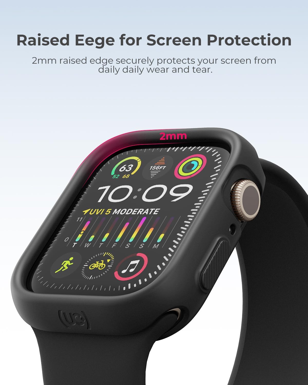 【حماية الشاشة】 مع الحافة المرتفعة 2 ملم التي تحمي شاشتك، يمكنك التنقل بثقة في أنشطتك اليومية، مع العلم أن ساعة ابل الخاصة بك محمية من الأشياء غير المتوقعة. إنها ليست مجرد حافظة؛ بل درع مصمم لرفع متانة جهازك.