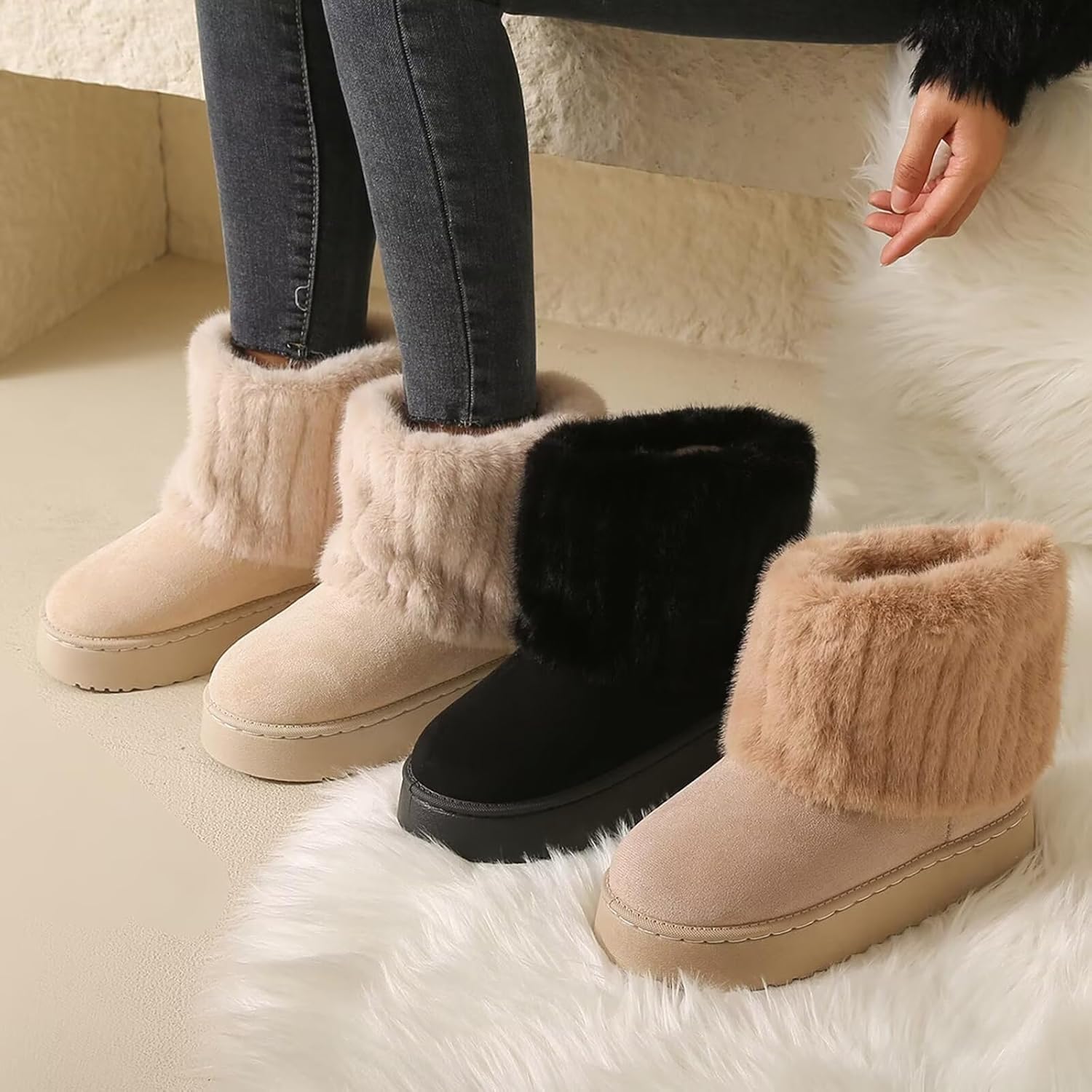 شراء جزمة شتوية شتوية دافئة من الفرو الصناعي للنساء مع بطانة من الفرو ونعل غير قابل للانزلاق اون لاين من امازون او نون الامارات جزمة شتوية شتوية دافئة من الفرو الصناعي للنساء مع بطانة من الفرو ونعل غير قابل للانزلاق