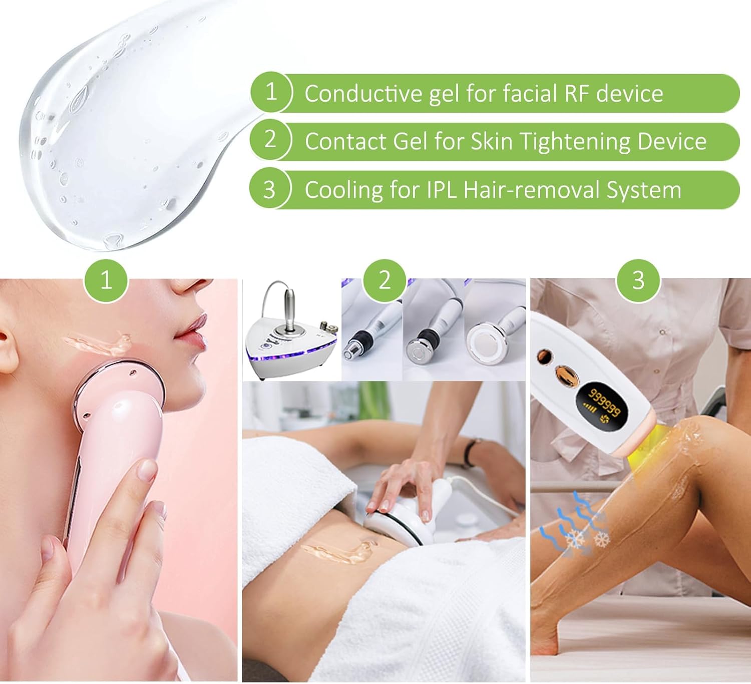 جل موصل RF لرفع الوجه بالتيار الدقيق أو استخدامه مع جهاز شد الجلد بالتردد اللاسلكي أو استخدامه كجل تبريد لأجهزة إزالة الشعر بالنبض الضوئي بالنبض الضوئي