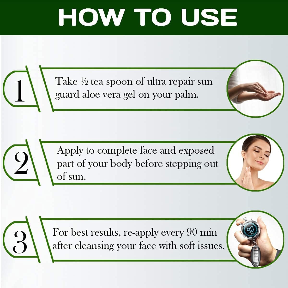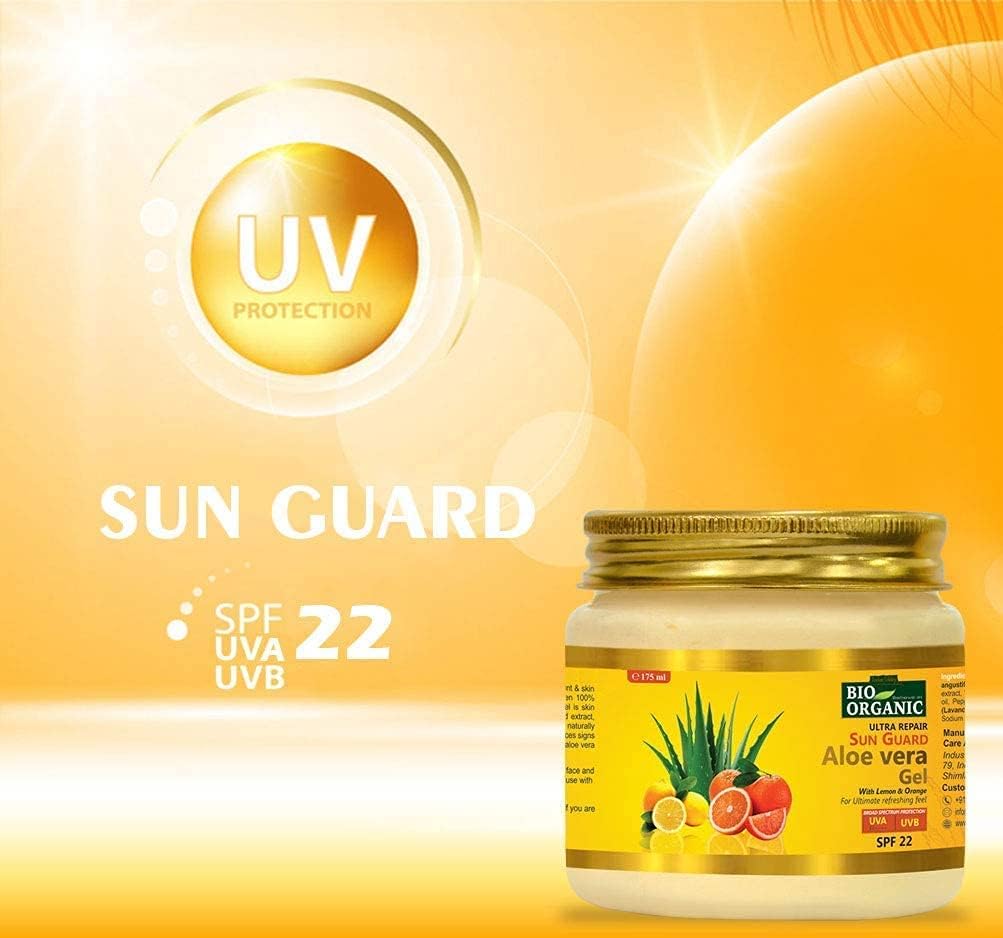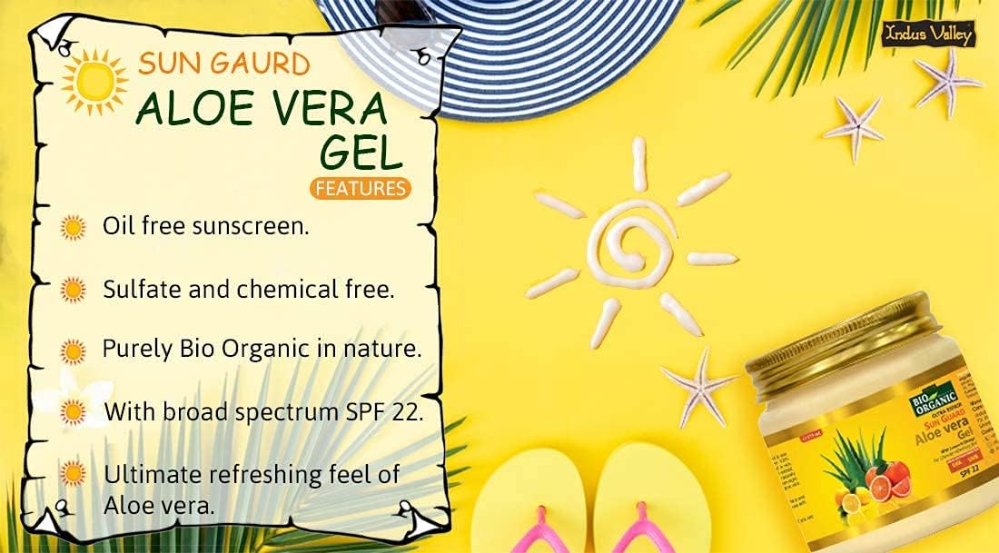The lightweight non-greasy texture of sun guard aloe vera gel easily glides on the skin and does not cause any patchiness. Good to go sunscreen with SPF 22 protection. The sunscreen melts into your skin and dries down in a snap without any greasy residue.