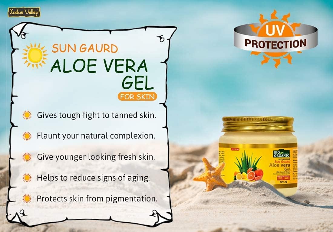جل الوقاية من الشمس الطبيعي الطبيعي 100% من إندوس فالي بيو أورجانيك ومعتمد من هالال – مرطب وملطف للبشرة والوجه ومعالجة الشعر
