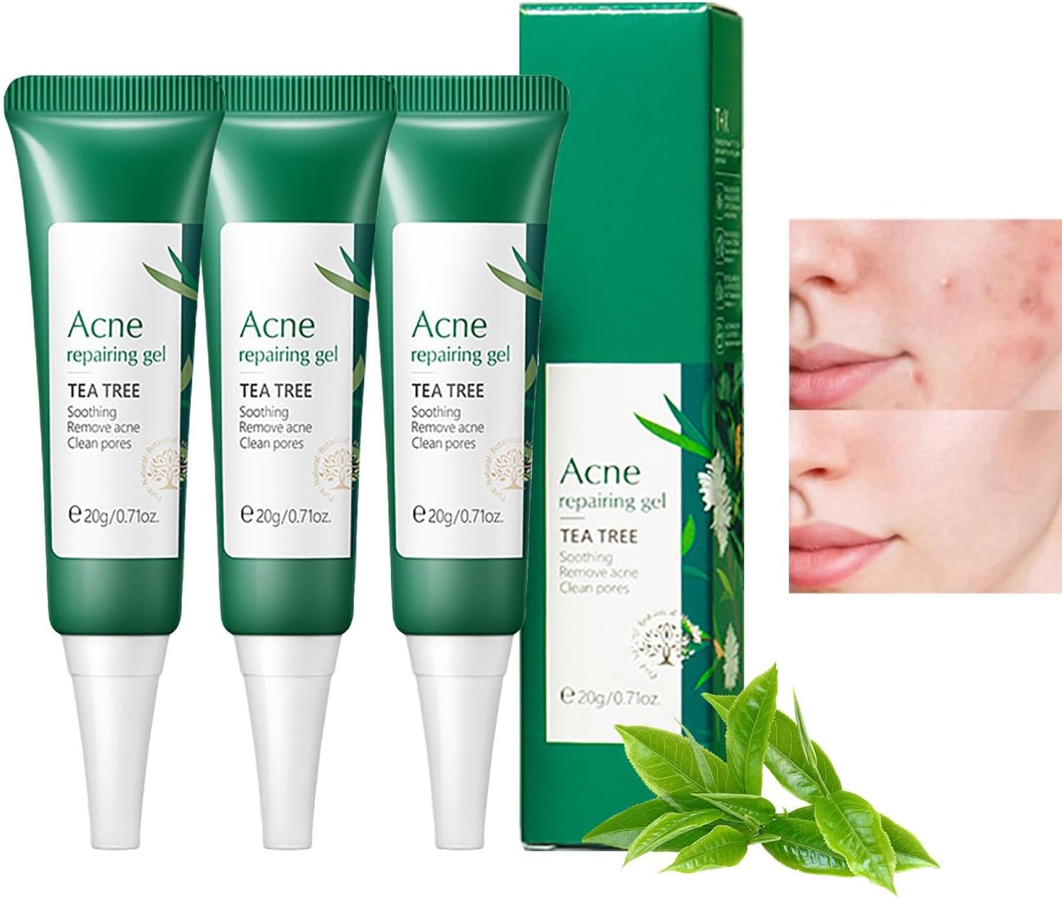 جل علاج حب الشباب من تي تري 3 قطع، علاج البقع المضادة لحب الشباب للوجه بتركيبة مرطبة، يتلاشى البثور والبقع الداكنة، يتحكم في الزيت وينكمش المسام للحصول على بشرة نقية وناعمة