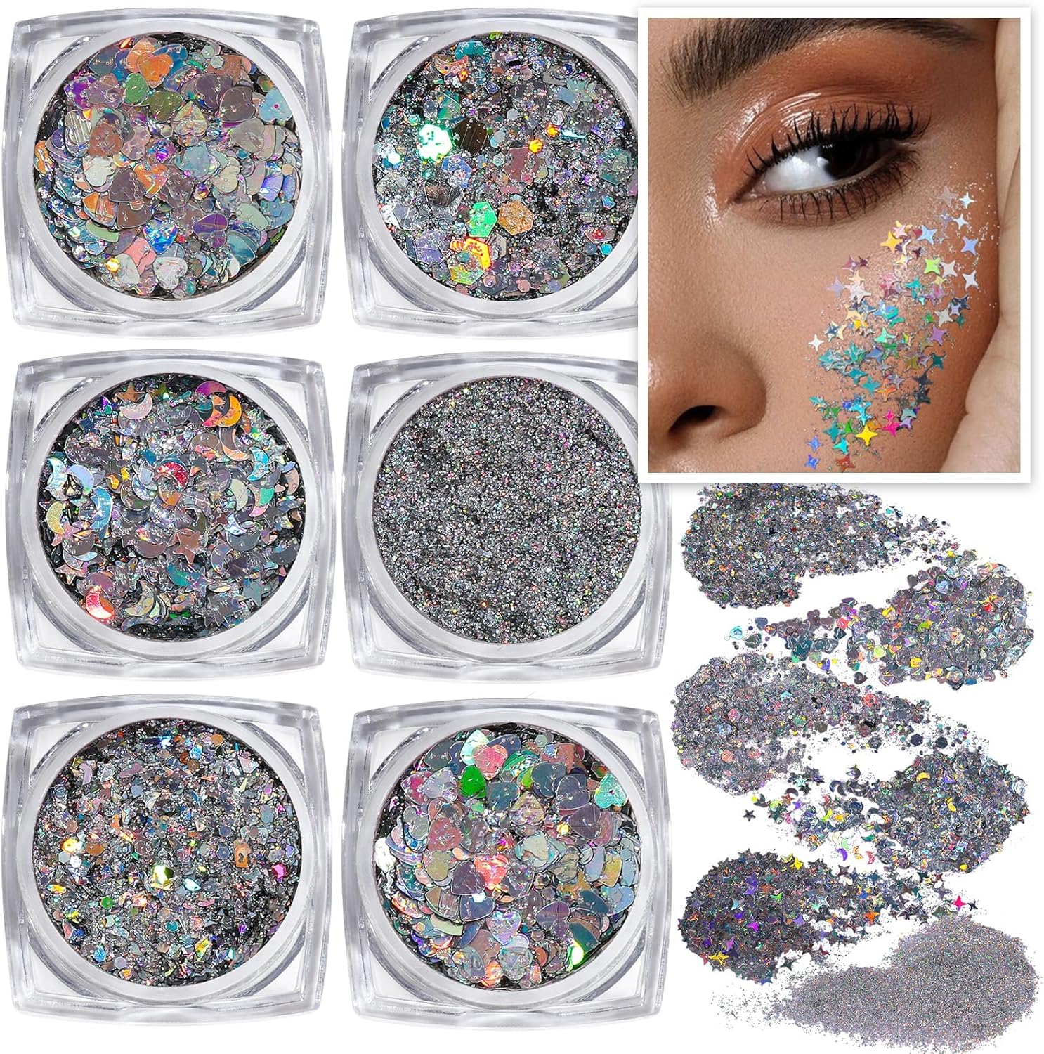 [مجموعة جليتر متعددة الأشكال] النجوم والأقمار والقلوب واللمعان بأحجام مختلفة للحصول على مظهر إبداعي لا نهاية له.