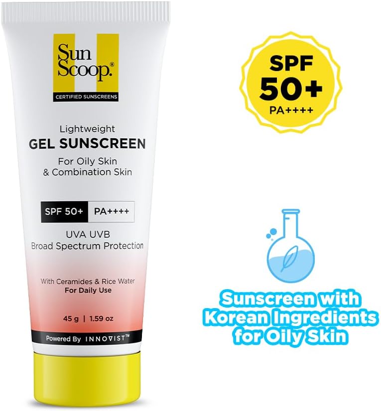 جل واقي من الشمس من صن سكوب بالسيراميد وماء الأرز | عامل وقاية +50 درجة PA++++ | لمسة نهائية خالية من الزيوت | 45 غرام