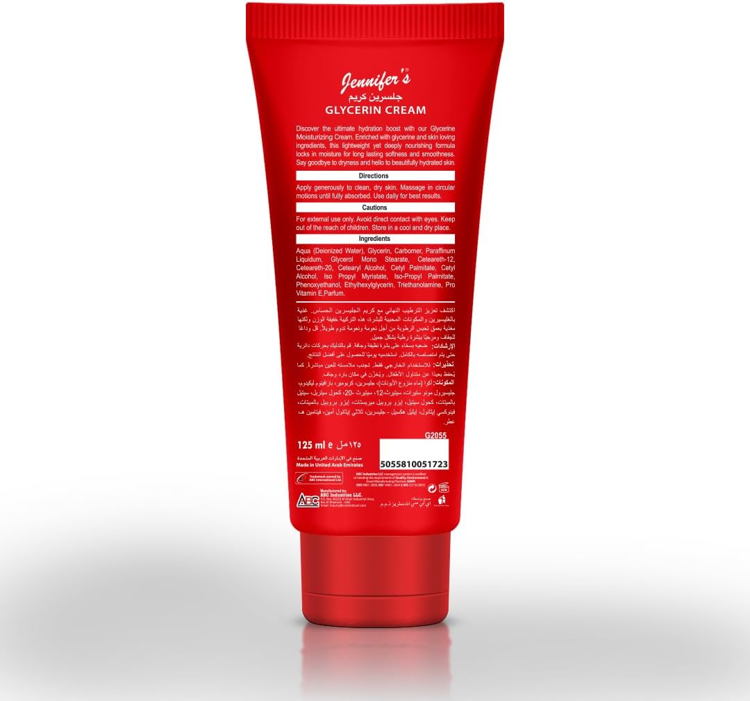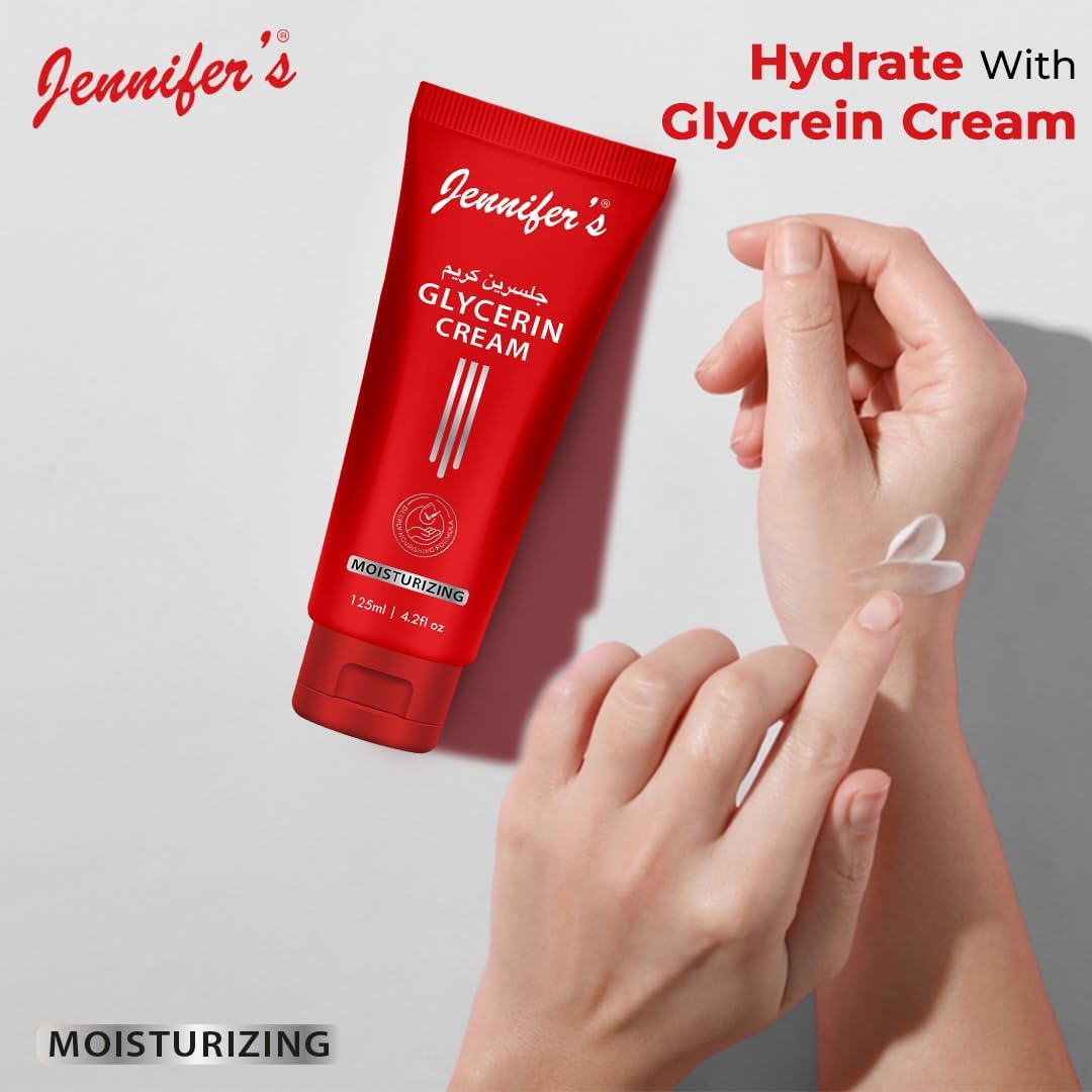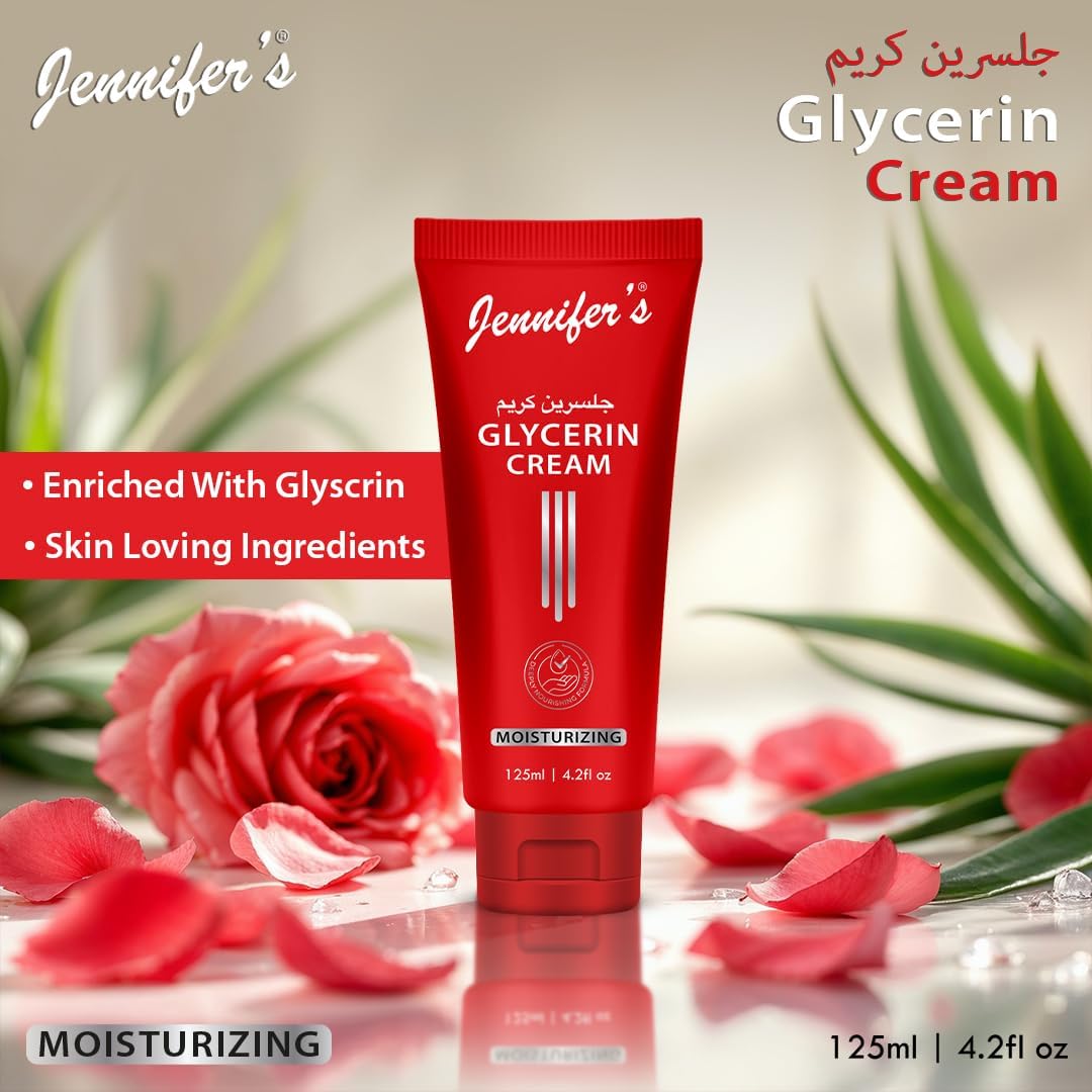 جربي ترطيبًا لا مثيل له مع كريم جنيفر Glycerin Cream وهو مرطب خفيف الوزن ولكنه مغذي بعمق. غني بفوائد الجلسرين والمكونات الممتازة المحبة للبشرة، يحبس هذا الكريم الرطوبة، ويترك بشرتك ناعمة وناعمة ومرطبة بشكل جميل. مصمم لجميع أنواع البشرة، وهو مثالي لمحاربة الجفاف وتعزيز توهج صحي ومشرق.