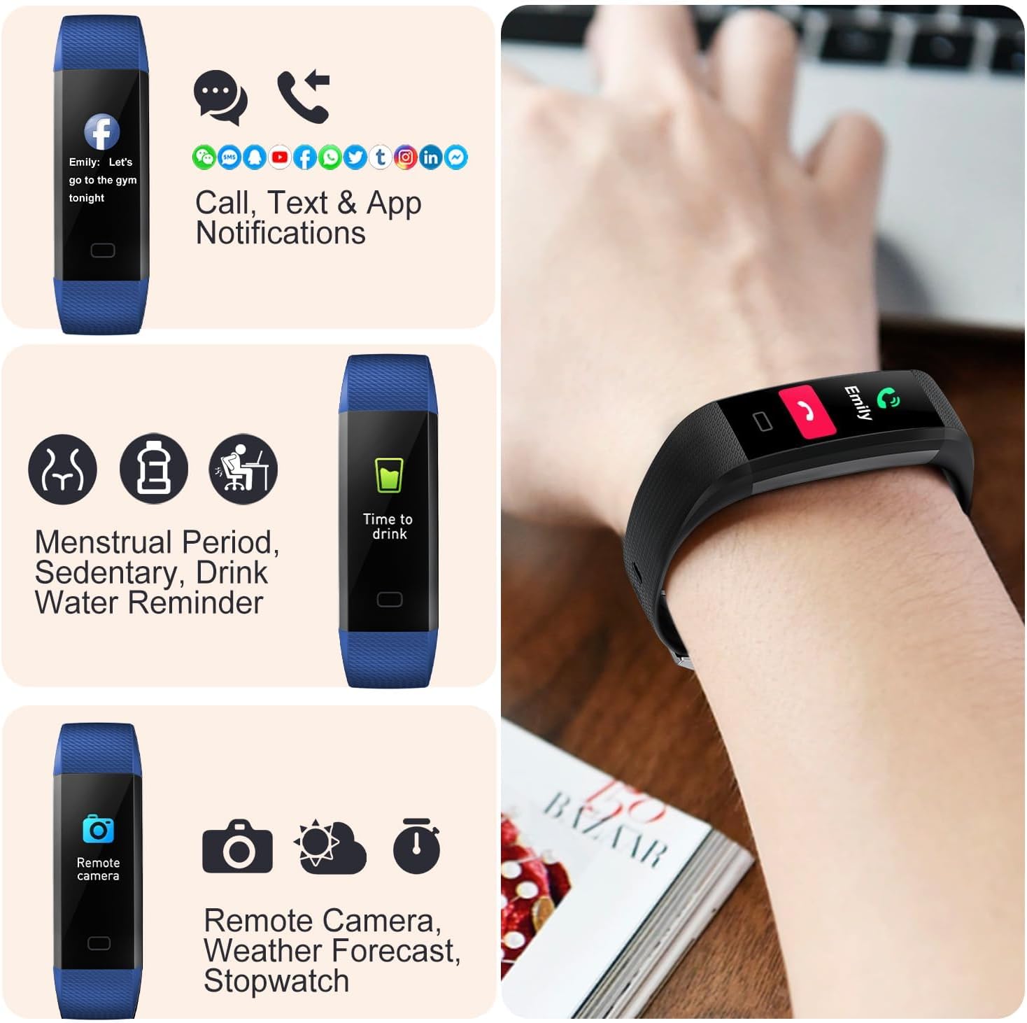 【الهدية المثالية للعائلة والأصدقاء ولنفسك】 تم تصميم جهاز تتبع اللياقة البدنية هذا ليناسب أقطار المعصم من 2.4 إلى 2.7 انش. تزن 0.8 اونصة فقط، فهي خفيفة الوزن ولطيفة على البشرة وناعمة ومقاومة للماء بتصنيف IP68. يراقب جهاز التتبع الأنشطة اليومية (العمل والتمارين والترفيه والنوم) ويسجل تمارينك وبياناتك الصحية. مناسبة للرجال والنساء وكبار السن. يمكن أن تكون واحدة من أكثر الهدايا المثالية.