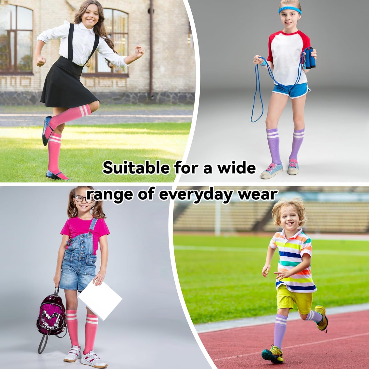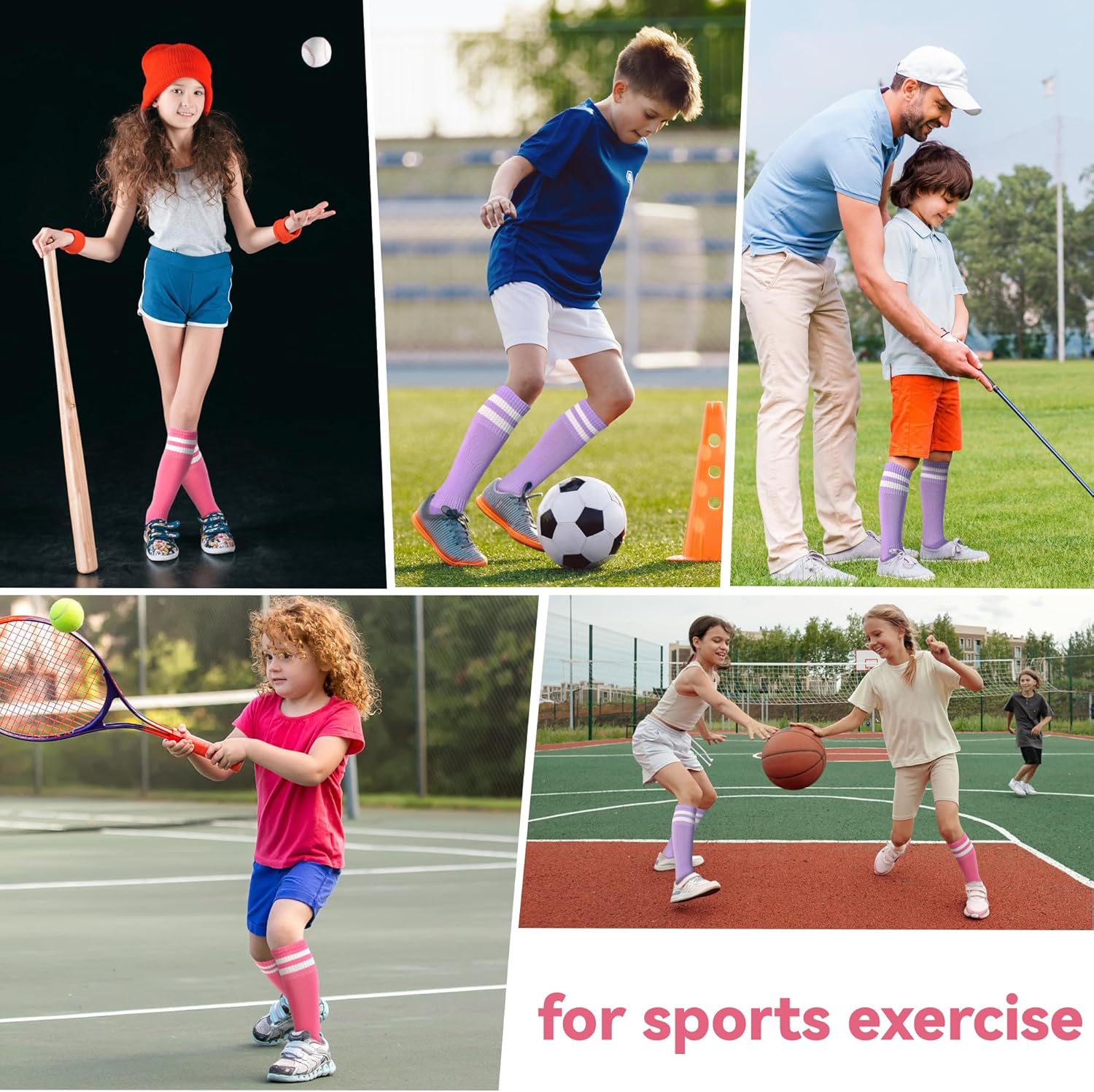 جوارب كرة القدم للاطفال في المدرسة الثانوية، جوارب رياضية سادة مخططة جيدة التهوية، جوارب رياضية للتدريب وكرة القدم للبنات والاولاد من سن 3-13 سنة
