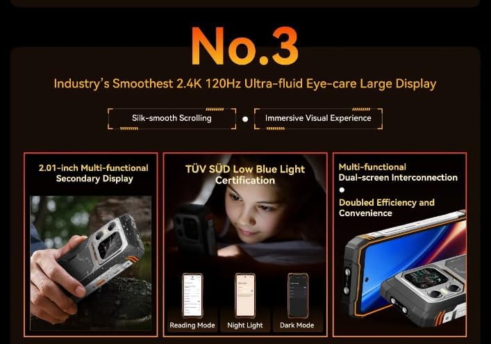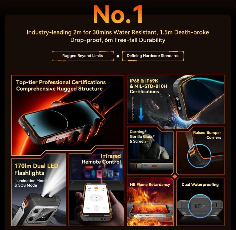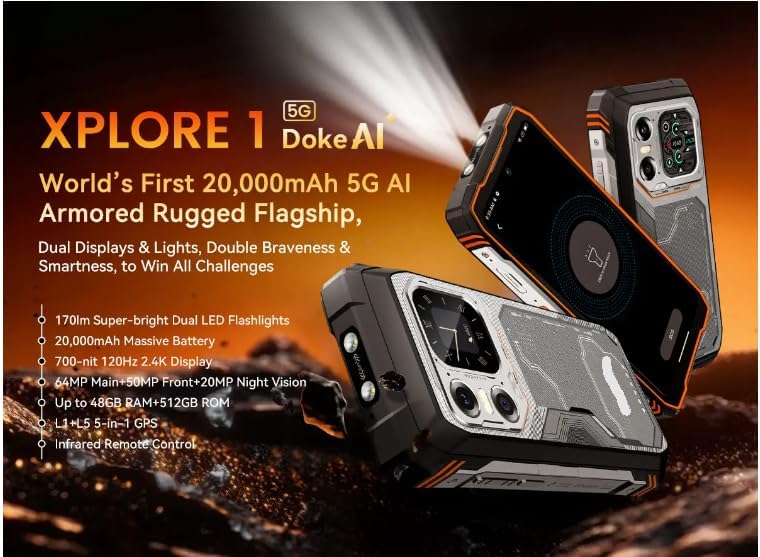 جوال اكسبلور 1 للاستخدام الخارجي، هاتف ذكي 5G مقاوم للماء بنظام اندرويد 15، شاشة 6.78 انش 2.4 كيه، 16GB+512GB، 20000mAh