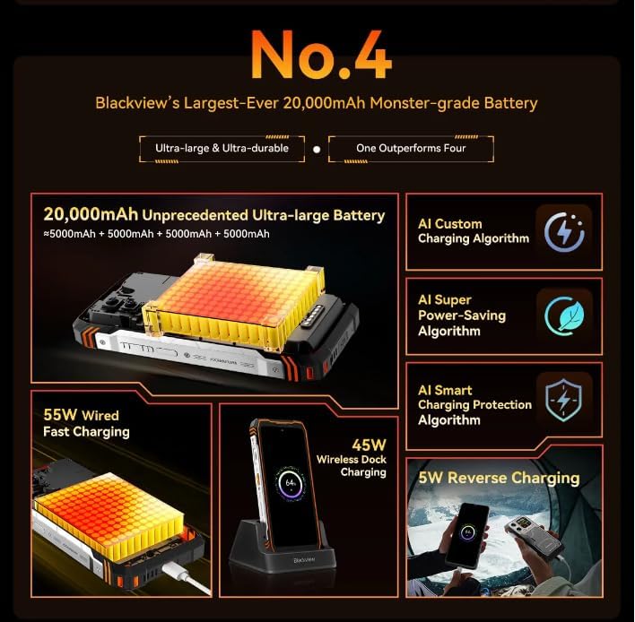 البطارية: بطارية 20000mAh، شحن سريع 55 واط