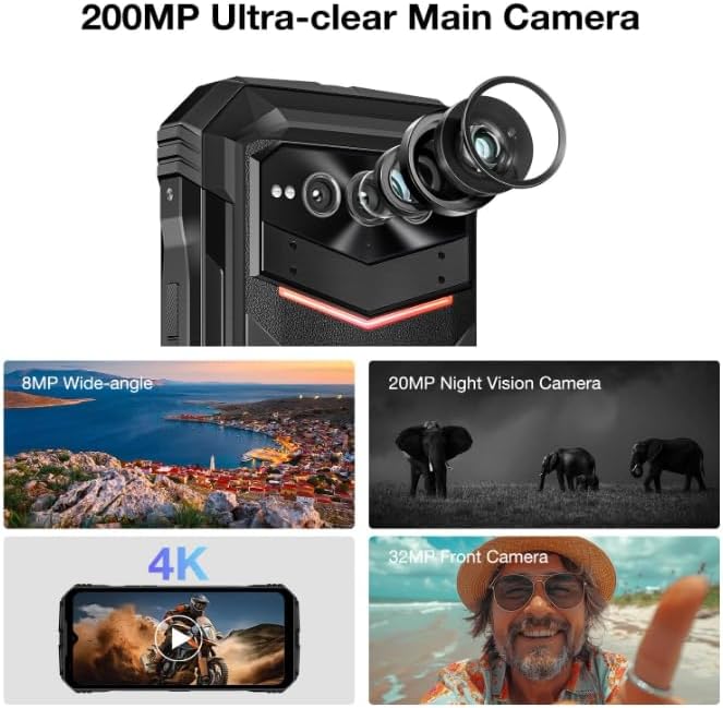 هاتف دوجي في ماكس بلس المتين 5G يتميز بكاميرا رئيسية بدقة 200 ميجابكسل لالتقاط الصور بوضوح وتفاصيل مذهلة. تدعم الكاميرا الأمامية بدقة 32 ميجابكسل صور السيلفي الجميلة، حتى تتمكن من الاستمتاع بأفضل مظهر في أي وقت. للتصوير الليلي، تعد كاميرا الرؤية الليلية بدقة 20 ميجابكسل خيارًا ممتازًا. بالإضافة إلى ذلك، توفر الكاميرا ذات الزاوية العريضة بدقة 50 ميجابكسل مناظر واسعة، كما تضيف الكاميرا المقربة بدقة 8 ميجابكسل لمسة فنية إلى صورك.