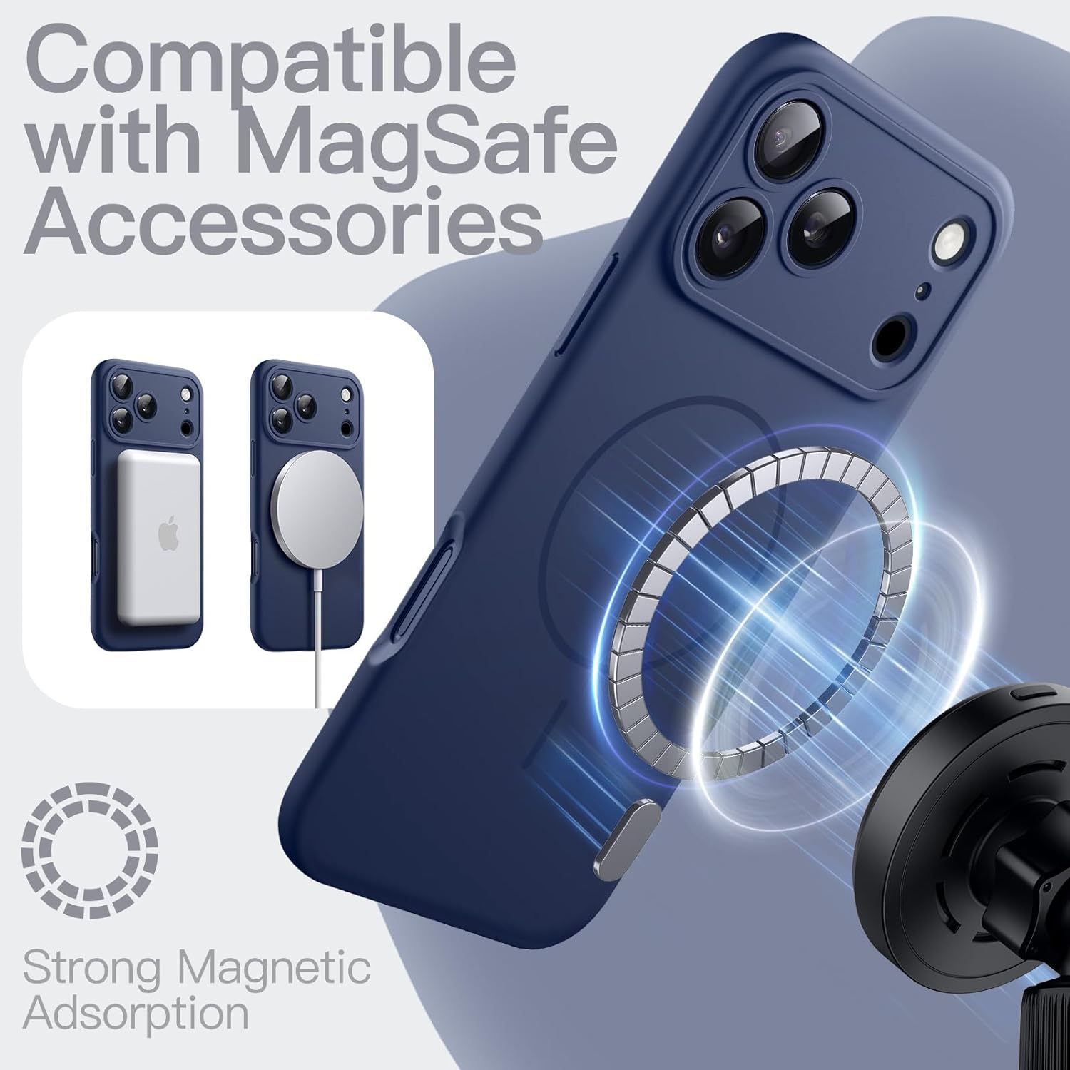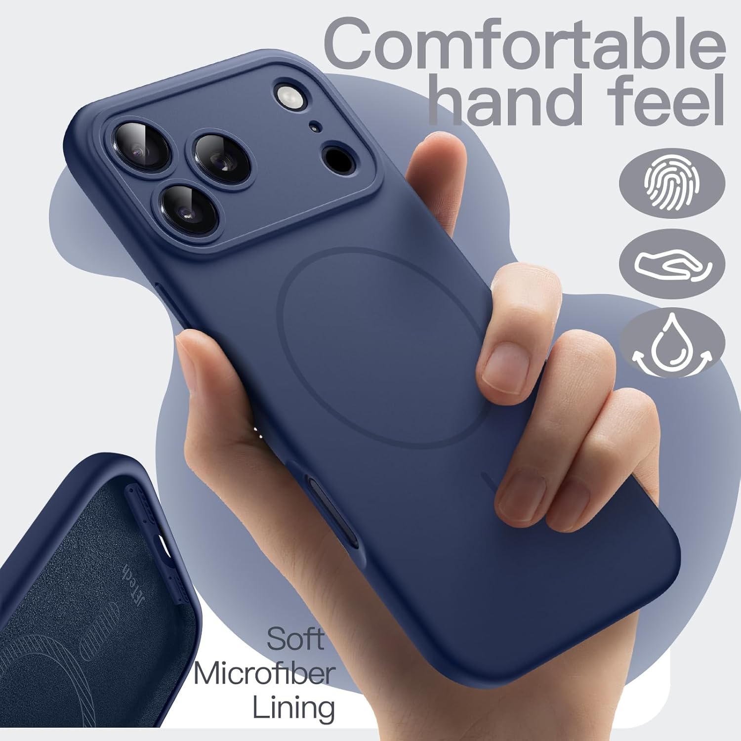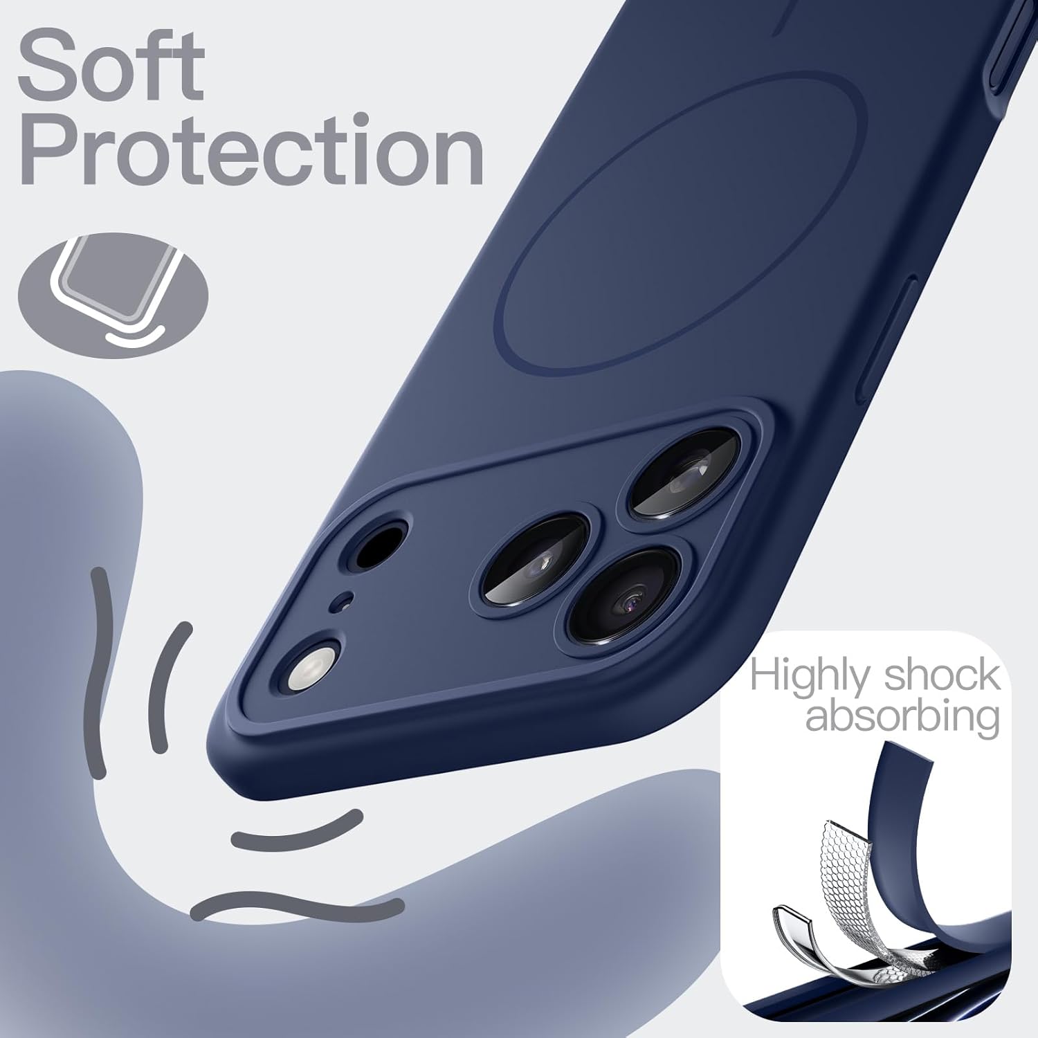 جيتك جراب سيليكون مغناطيسي لموبايل ايفون 17 برو 6.3 انش، متوافق مع ماج سيف، ملمس ناعم حريري، غطاء جوال ممتص للصدمات مع حماية عدسة الكاميرا (ازرق داكن)