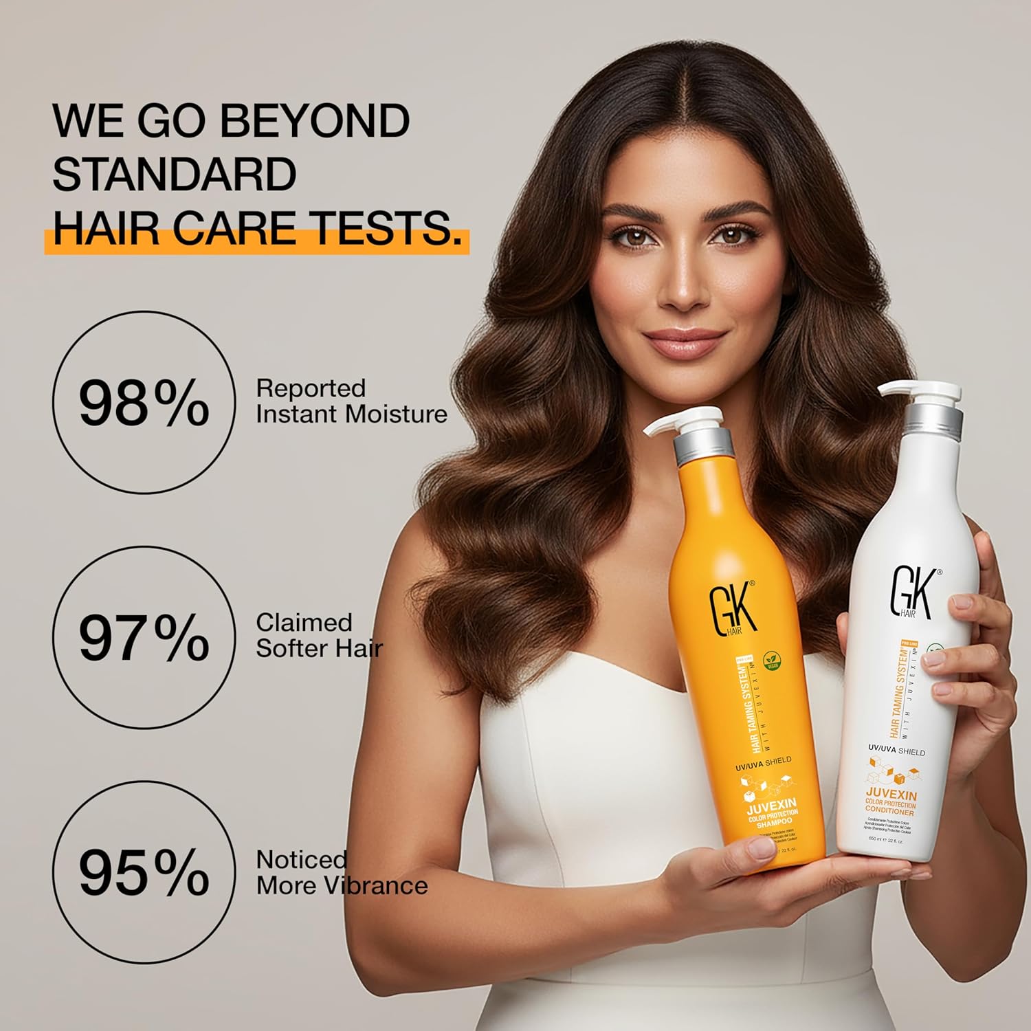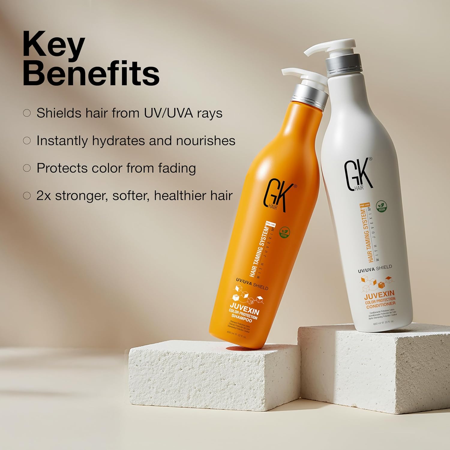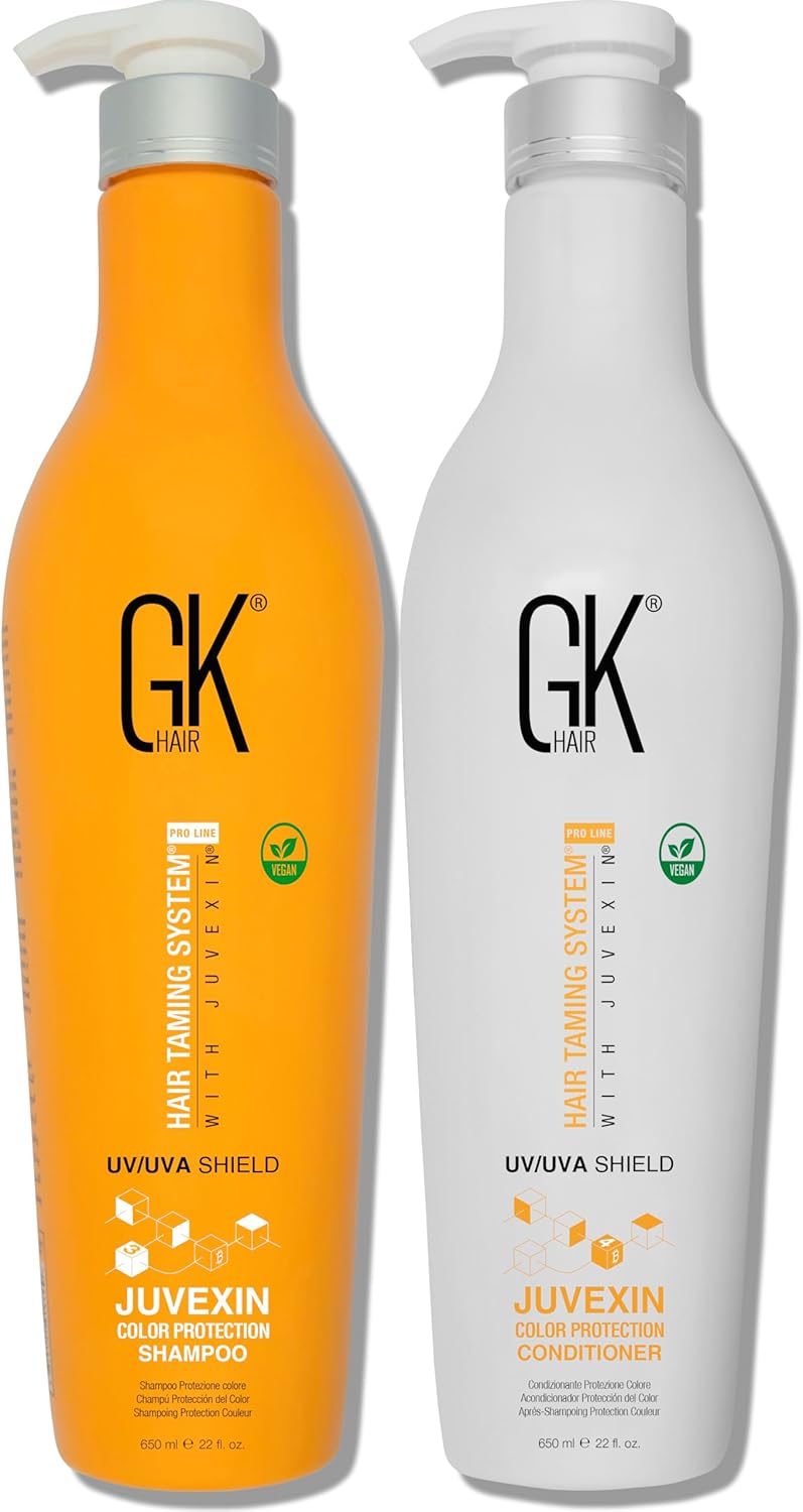 جي كيه هير مجموعة شامبو وبلسم كيراتين كولور شيلد من جلوبال (22 اونصة سائلة/650 مل) – تنظيف عميق وحماية من الحرارة للشعر المجعد الجاف والتالف والمجعد – خالي من الكبريتات