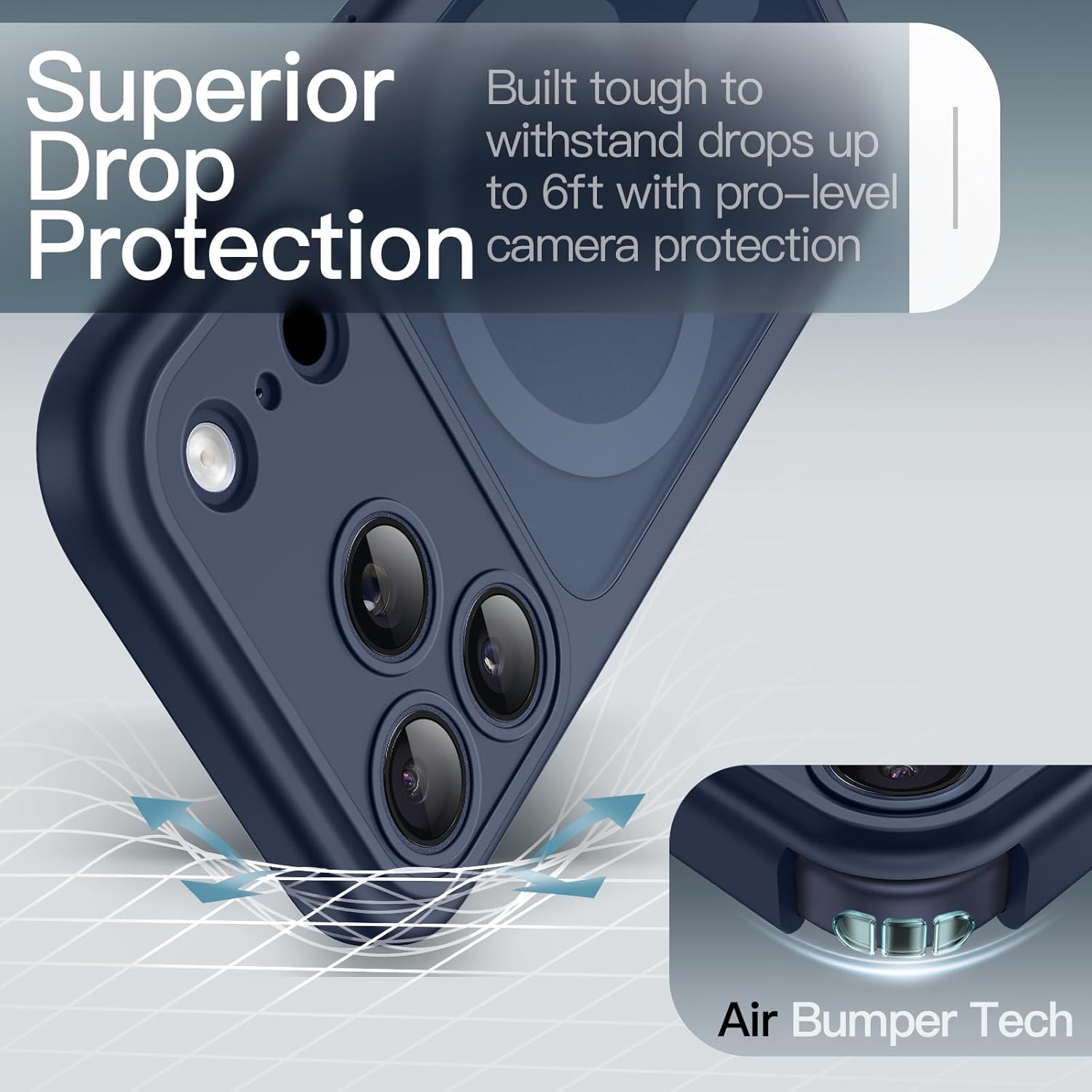 [حماية معززة من السقوط والخدوش] تحمي الحواف المرتفعة الشاشة والكاميرا من ملامسة السطح. تساعد المواد الماصة للصدمات على حماية هاتفك من الصدمات اليومية والسقوط العرضي دون المساس بالأناقة