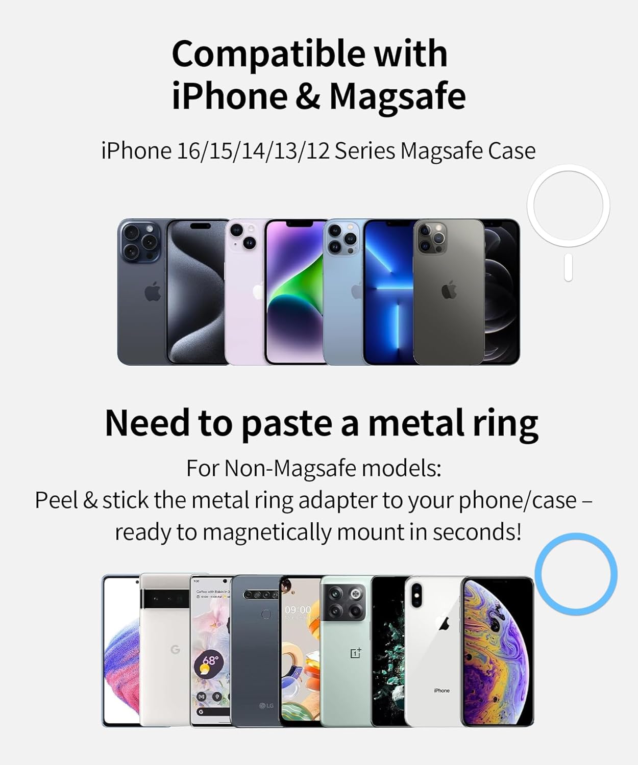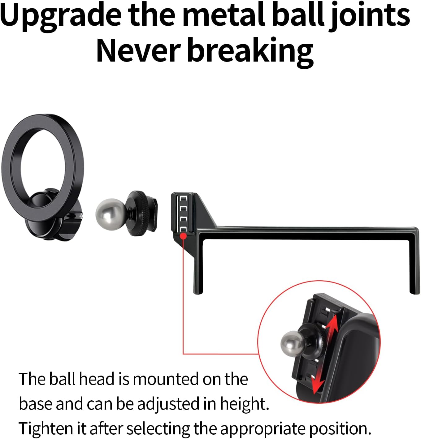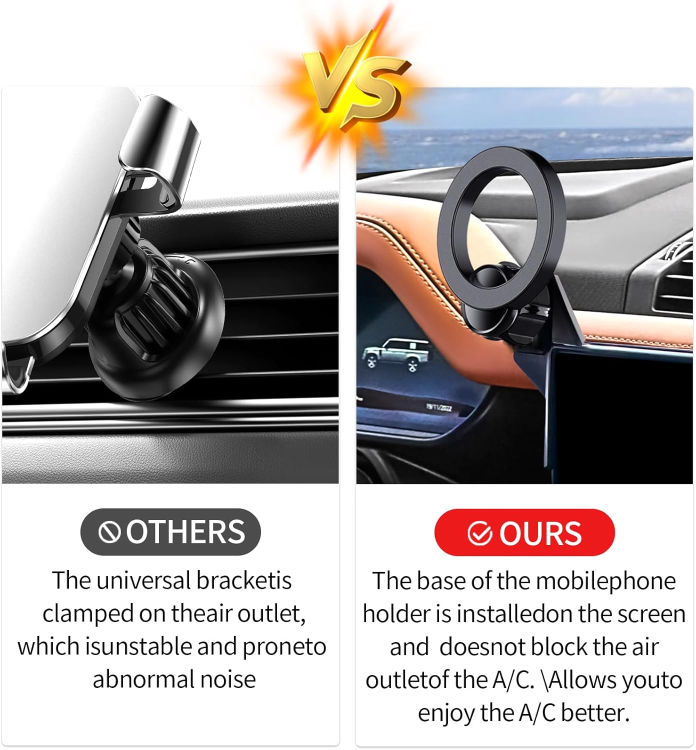 تصميم حامل مغناطيسي قوي للسيارة لماج سيف: حامل سيارة ماج سيف مصنوع خصيصًا من خليط الألومنيوم الأسود. يأتي حامل موبايل السيارة مع 20 مغناطيسًا أعرض N55 يوفر شفطًا قويًا للغاية. تحافظ المغناطيسية القوية على ثبات موبايلك، مما يمنحك تجربة قيادة آمنة حتى على الطرق الوعرة