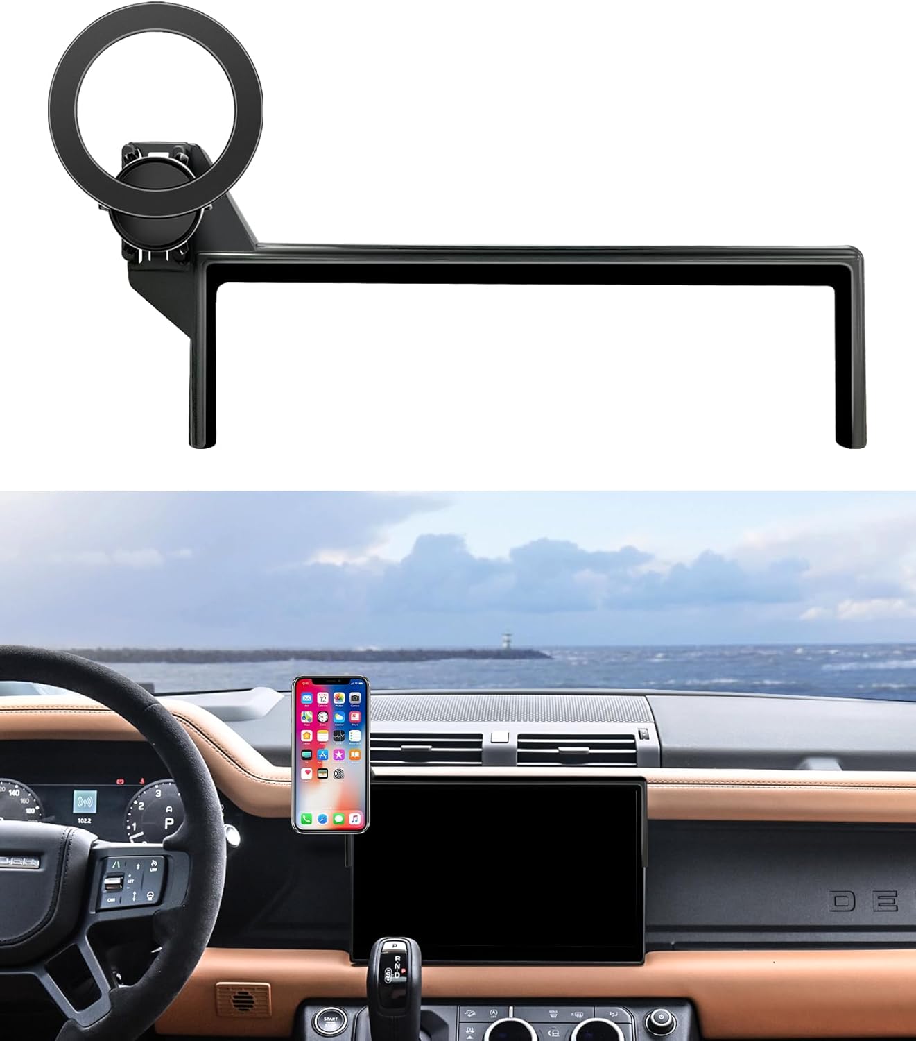 حامل جوال للسيارة من مازر ويلر لسيارة لاند روفر ديفندر 2022-2025، مشبك ثابت للشاشة 11.4 انش، حامل موبايل دوار 360 درجة متوافق مع ماج سيف، حامل جوال لا يؤثر على فتحة التهوية
