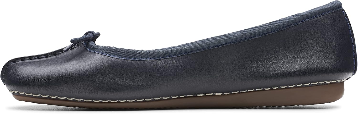 حذاء كلاركس Freckle Ice هو زوج أنيق للغاية من الأحذية الكاجوال النسائية التي تجمع بين العملية والمستويات العالية من الراحة. أحذية نسائية عصرية بتصميم مستوحى من شبشب الباليه من الجلد الناعم. تضيف تفاصيل الدرزات والخياطة المتباينة والنعل المطاطي جاذبية عصرية، وهذا النمط الكاجوال المريح سهل الارتداء مع فيونكة خيطية لطيفة.