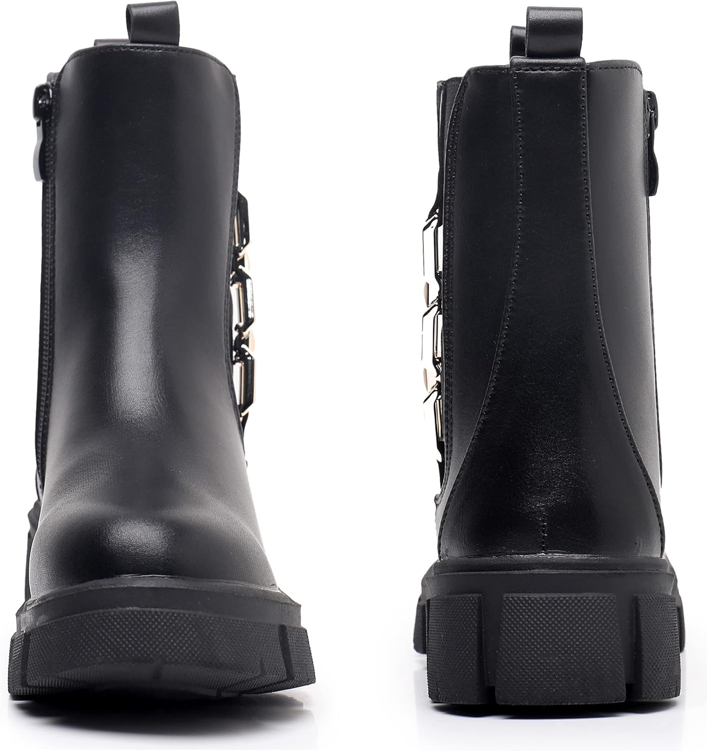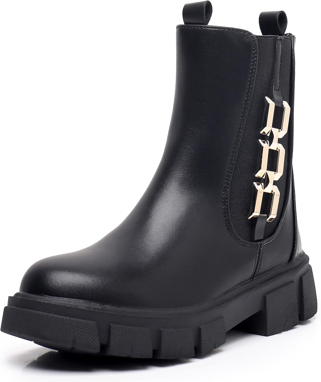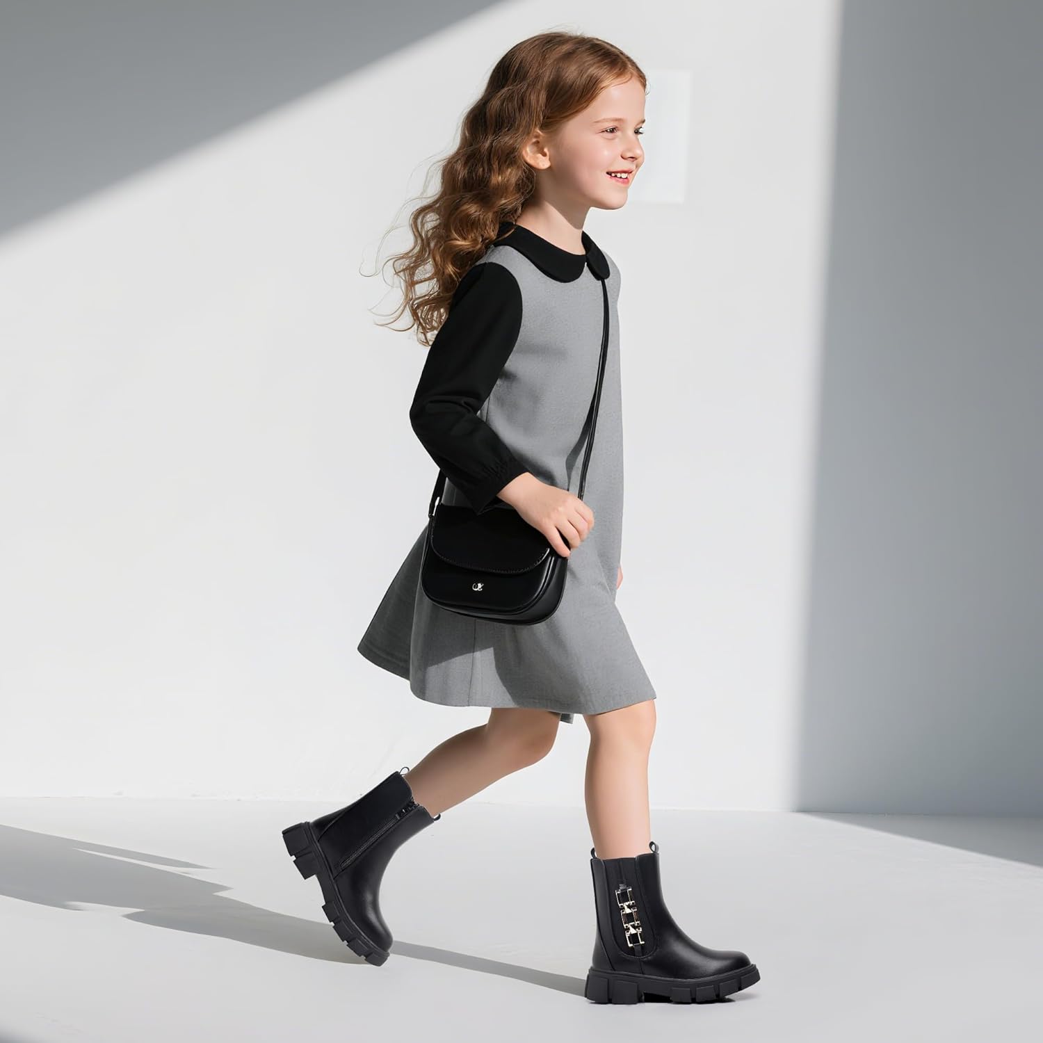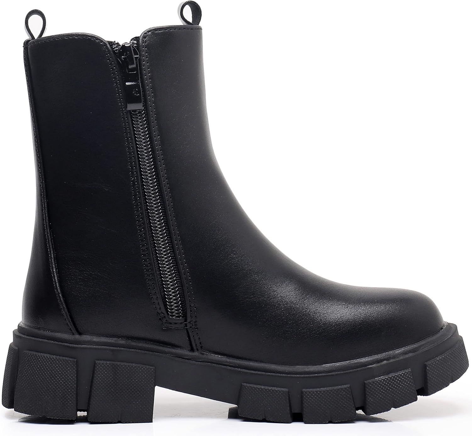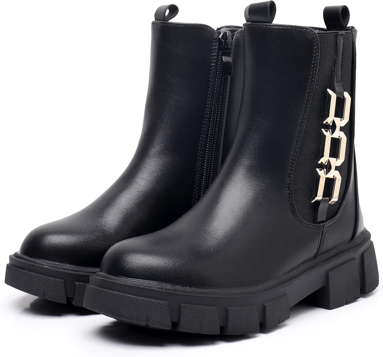 حذاء بيتي عصري بسحاب جانبي للبنات الصغيرات والكبيرات (للاطفال الصغار/الاطفال الكبار)، اسود، مقاس 4 للاطفال الكبار