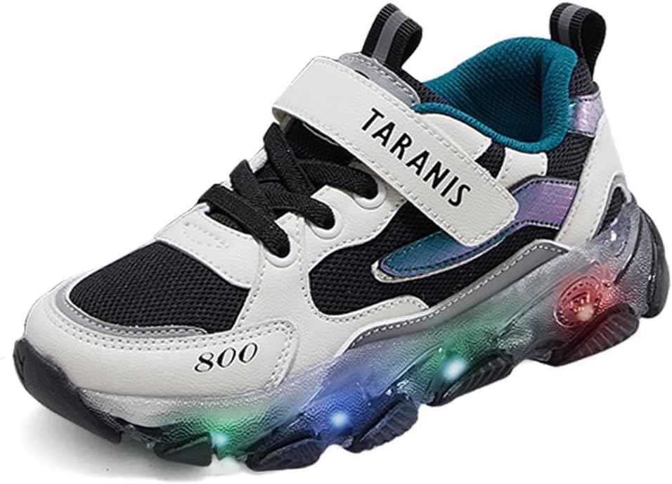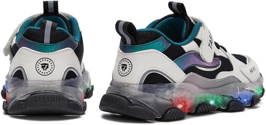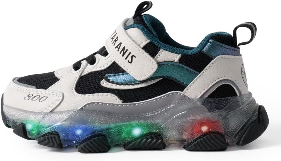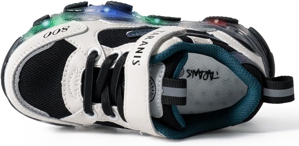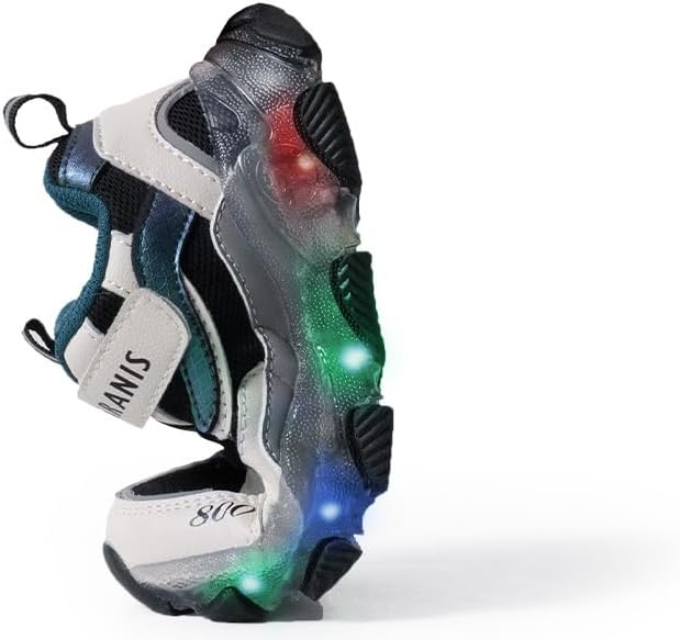 These toddler tennis sneakers are made from microfiber and mesh. Velcro for easy on and off. Sporty casual design with lights that blink at every step.