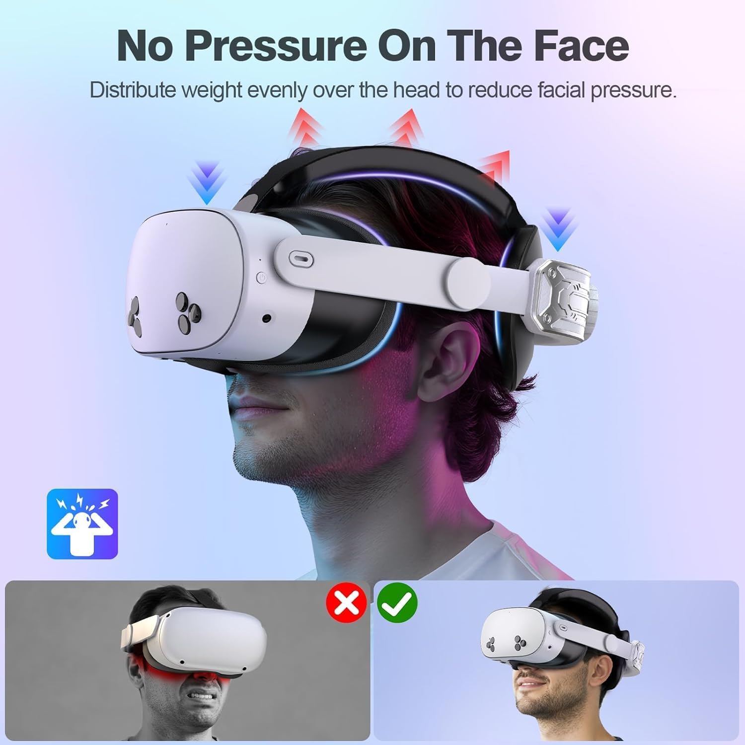 حزام الرأس لميتا كويست 3/3S: ملحقات سماعة الواقع الافتراضي – بديل لحزام إيليت – متوافق مع اوكيولوس/ميتا كويست 3/3S – راحة معززة، يقلل من الضغط على الرأس