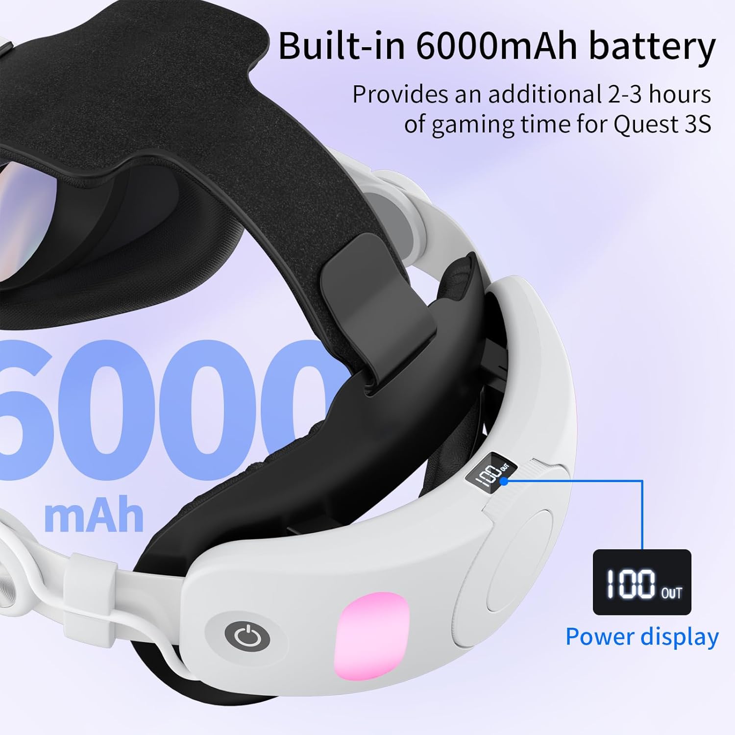 【حزام رأس مطور مع بطارية لـ Quest 3S】سيساعدك حزام الرأس ريجيك لكويست 3S مع بطارية 6000mAh على إطالة وقت اللعب وحل مشكلة إيقاف التشغيل بسبب نقص الطاقة.