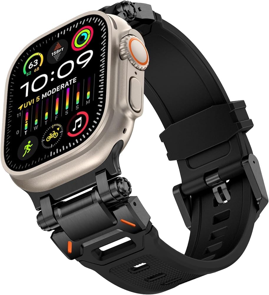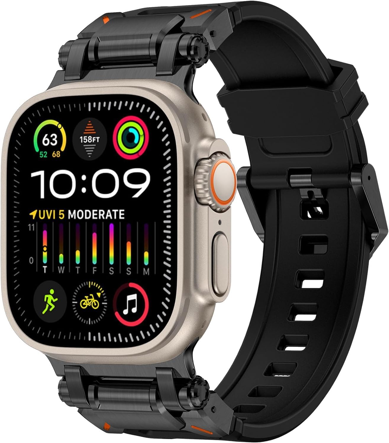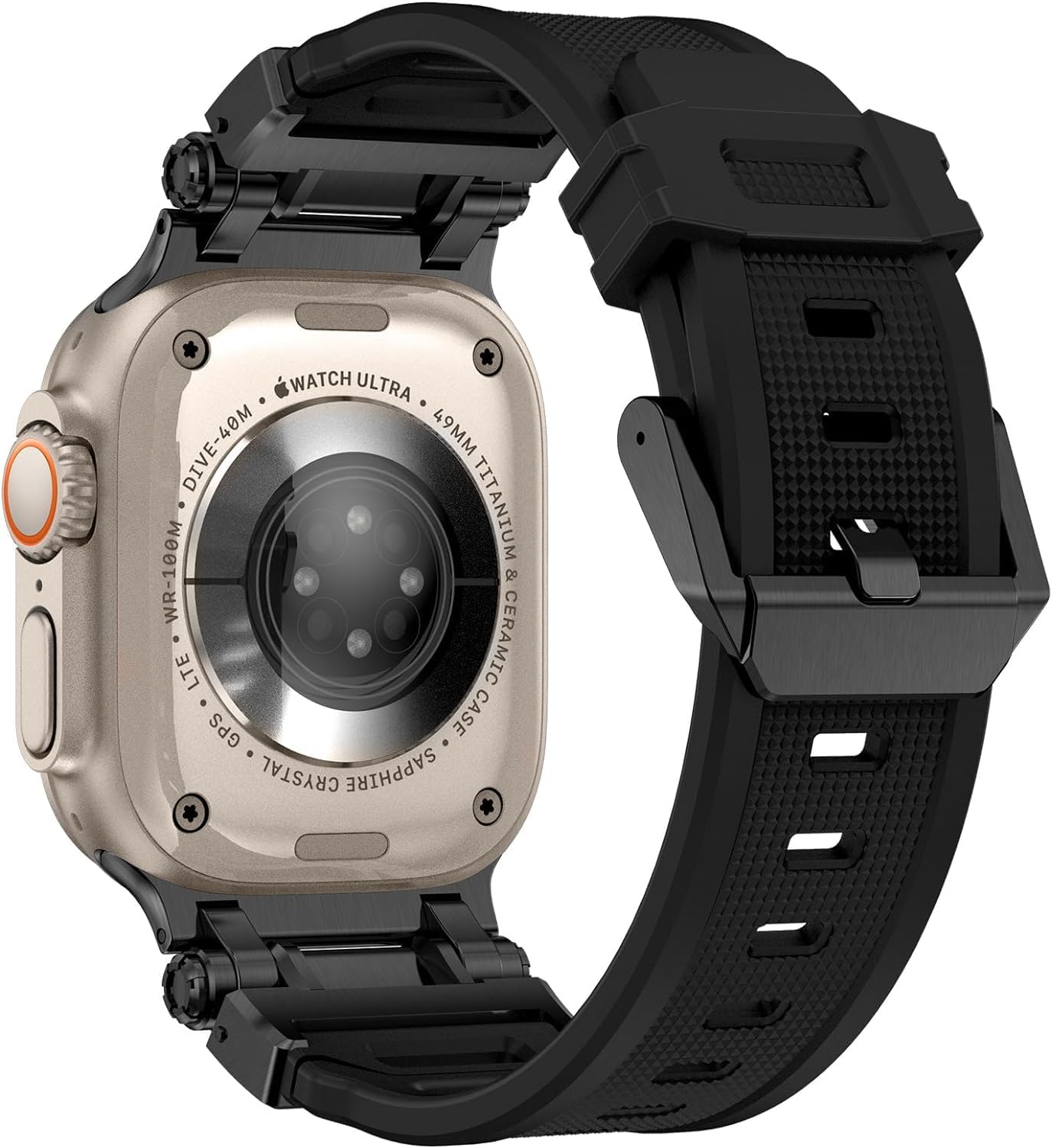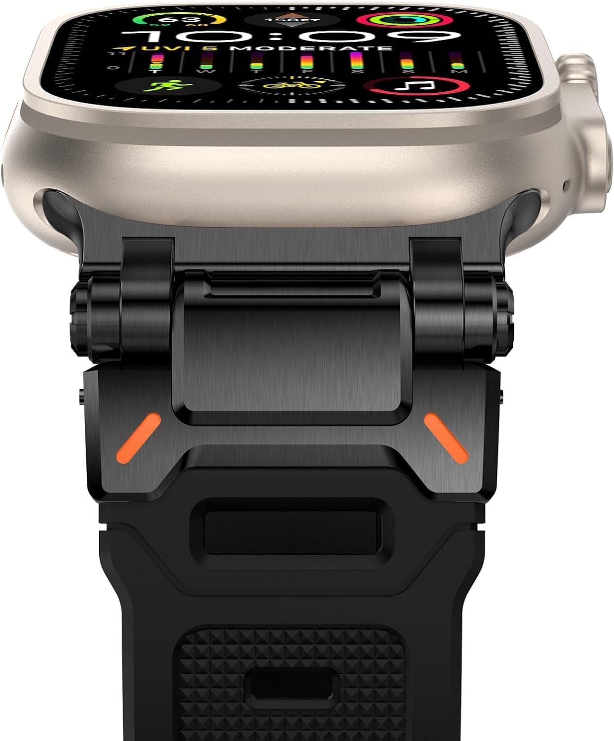 دادو سوار رياضي مطاطي متوافق مع ساعة ابل سلسلة الترا 2 | 9 | 8 الترا | 8 | 7 | 6 | 5 49/45/44/42 ملم، سوار مطاطي فاخر مع موصل معدني