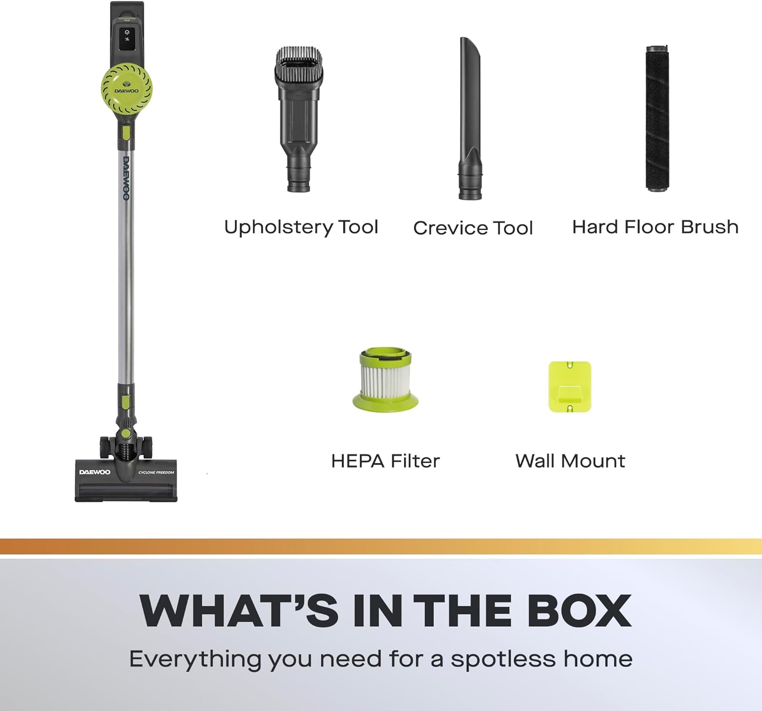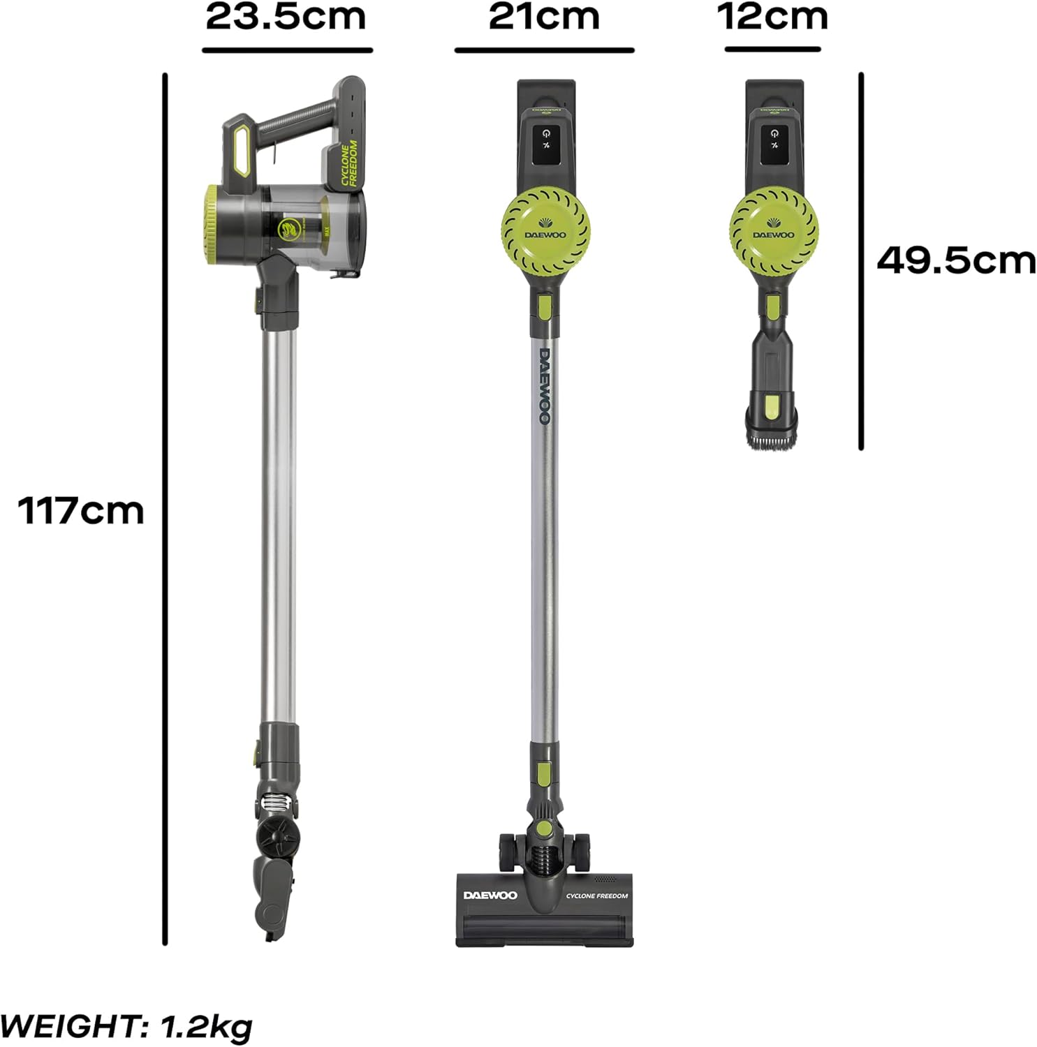 دايو مكنسة كهربائية لاسلكية محمولة باليد من سايكلون برو، خزان غبار سعة 0.6 لتر بدون كيس، وقت تشغيل 35 دقيقة، تخزين وشحن يعلق على الحائط، رؤوس فرشاة قابلة للتبديل