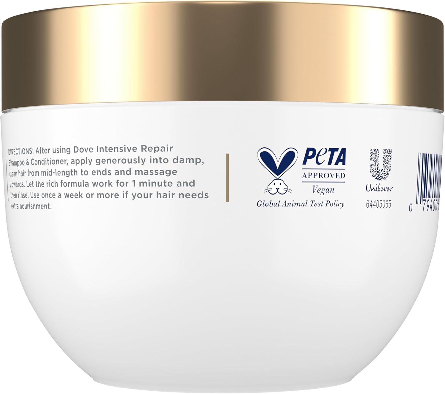 تجديد الشعر: قناع الشعر دوف Intensive Repair يتجدد مع كل استخدام – يولد الشعر من جديد من 10 علامات تلف في دقيقة واحدة من التقصف، نظام 3 خطوات مقابل الشامبو غير المرطب.