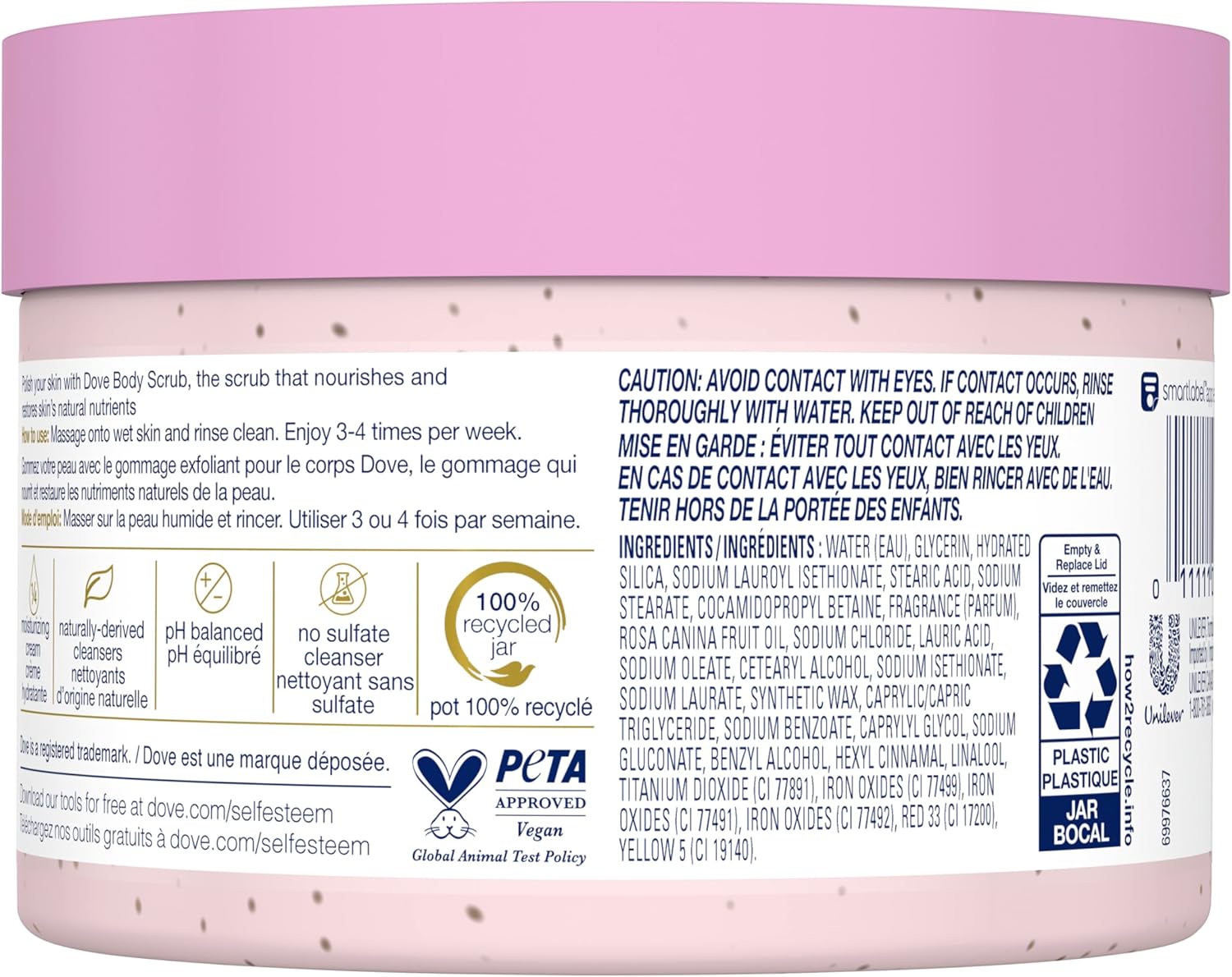 تركيبة الرطوبة: يتم تصنيع دوف Scrubs فقط باستخدام 1/4 كريم مرطب لتحضير بشرتك مع هذا المزيج الفريد من نوعه من ملح الهيمالايا وزيت الورد.