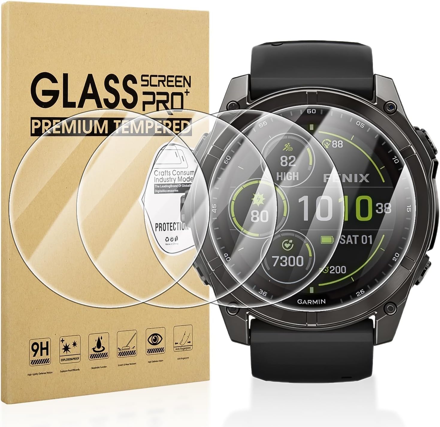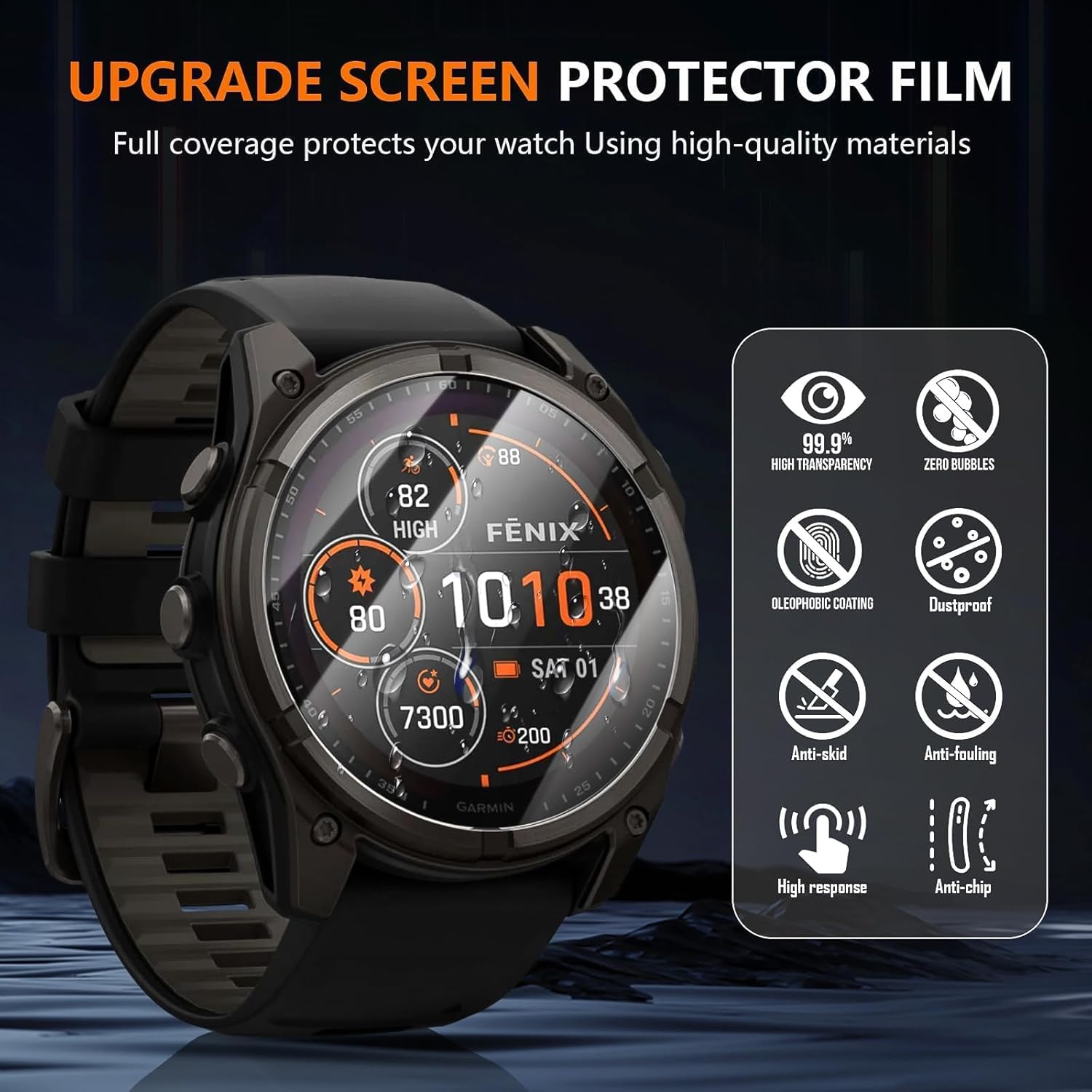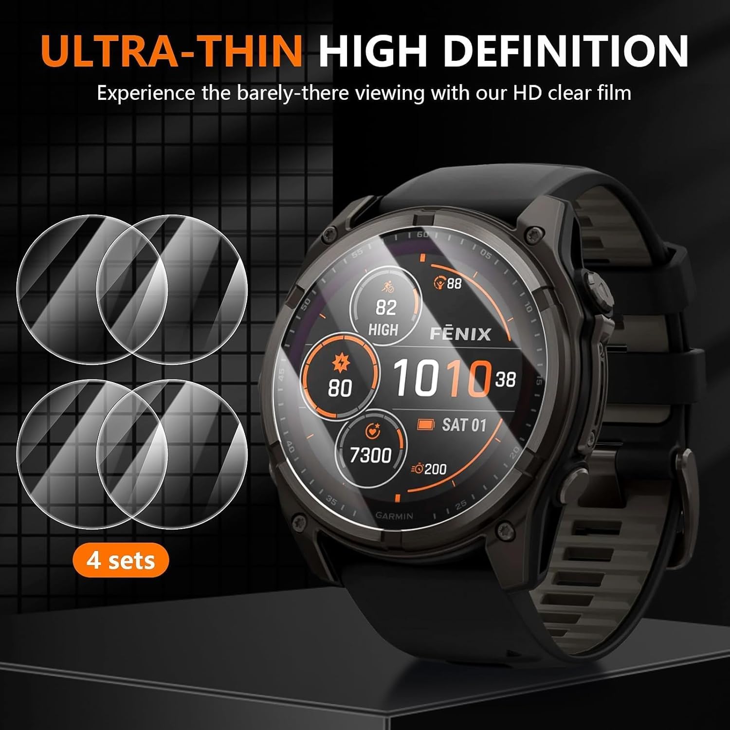 التوافق: تم تصميم غشاء الساعة بزجاج واقي لزجاج جارمين فينيكس 8 51 ملم، يناسب سطح الساعة تمامًا ويوفر حماية كاملة ومثالية للشاشة