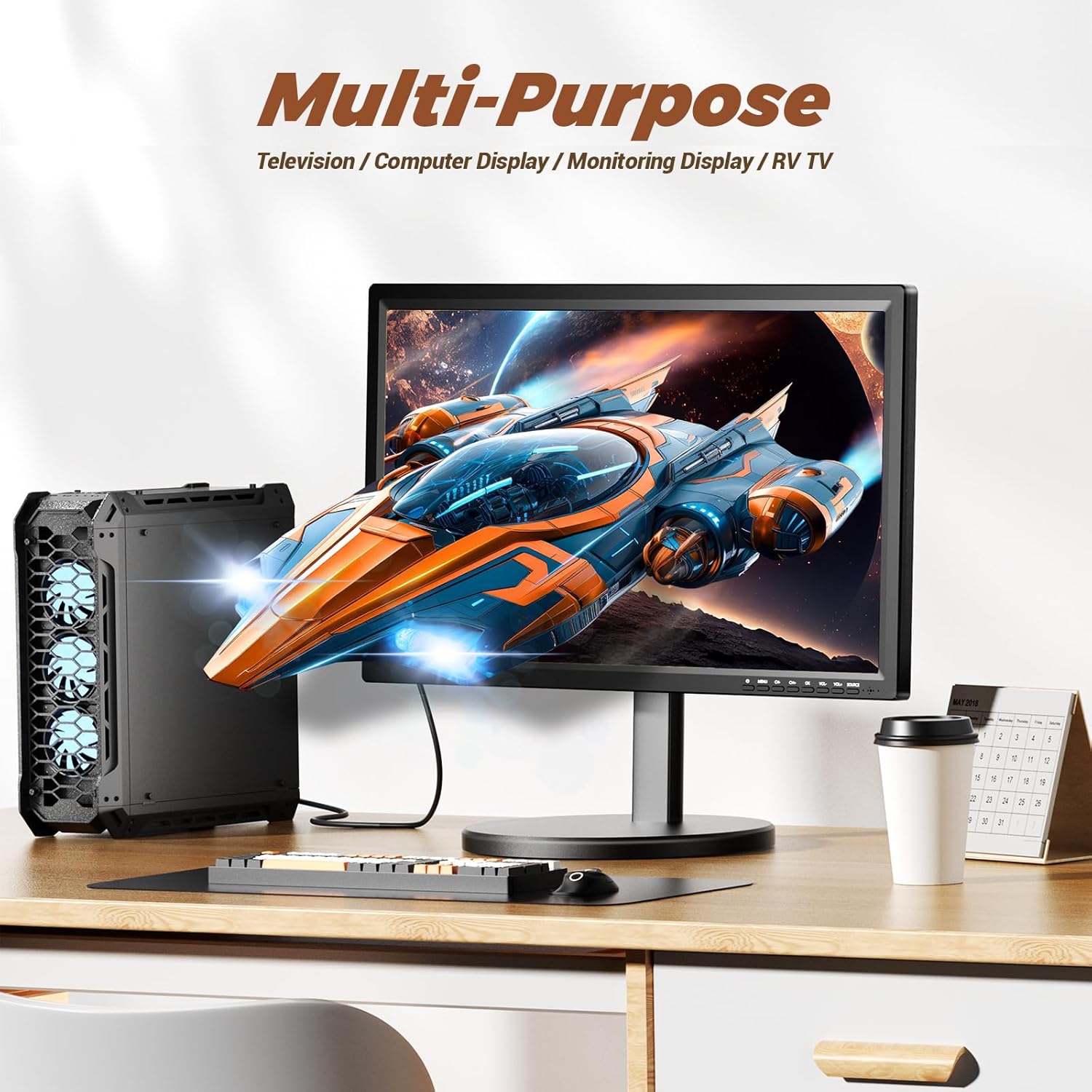 تحديثات جديدة – تلفزيون صغير ديسوبري مقاس 22 بوصة بدقة 1080 بكسل، مدخلات HDMI USB ايه في، تلفزيون ميني مع هوائي وموالف DVB-T2 – تلفزيون صغير 12 فولت للمطبخ والمنزل والمنازل المتنقلة، يستخدم كشاشة كمبيوتر أو شاشة