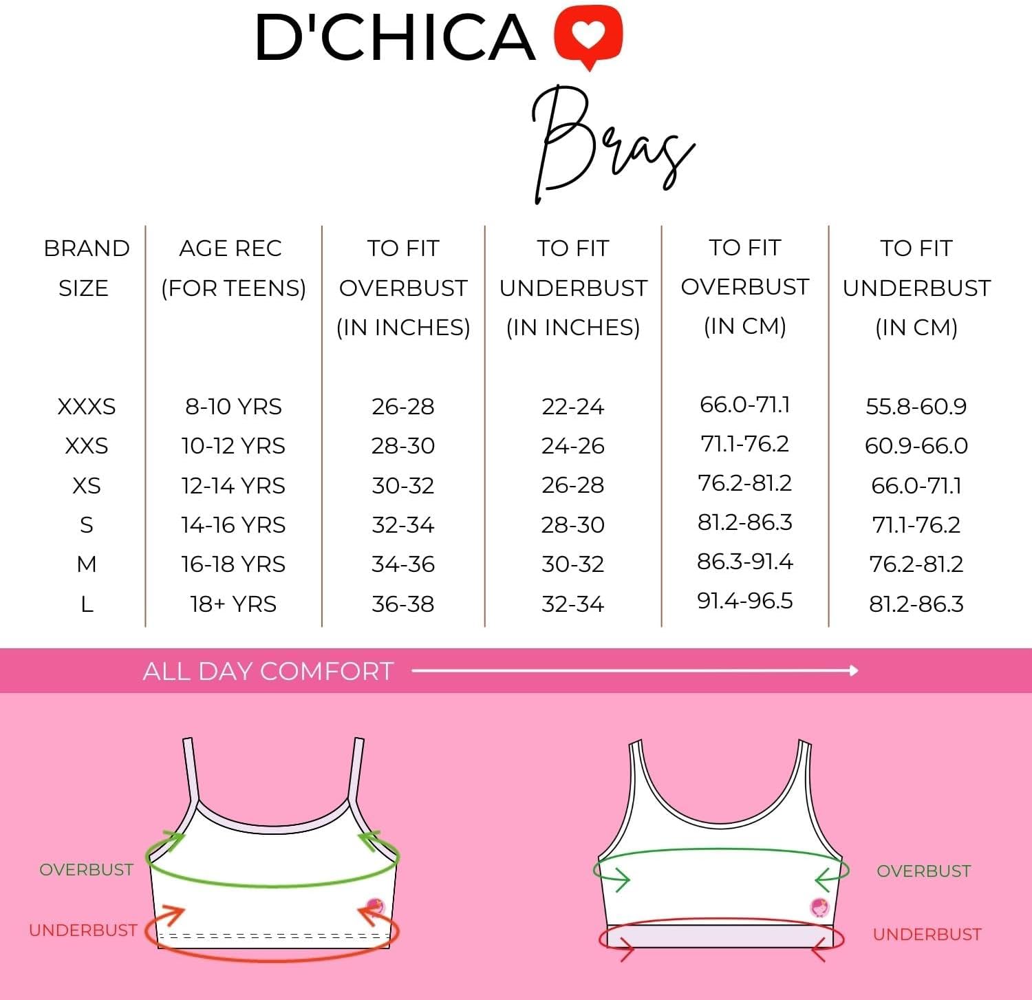 ديشيكا حمالة صدر رياضية للبنات، حمالة صدر قطنية غير مبطنة للمبتدئين، حمالات صدر للمراهقين بدون اسلاك لصالة الالعاب الرياضية والتمرين واليوغا سهلة الارتداء مزدوجة الطبقات بتغطية كاملة – عبوة من 4 قطع