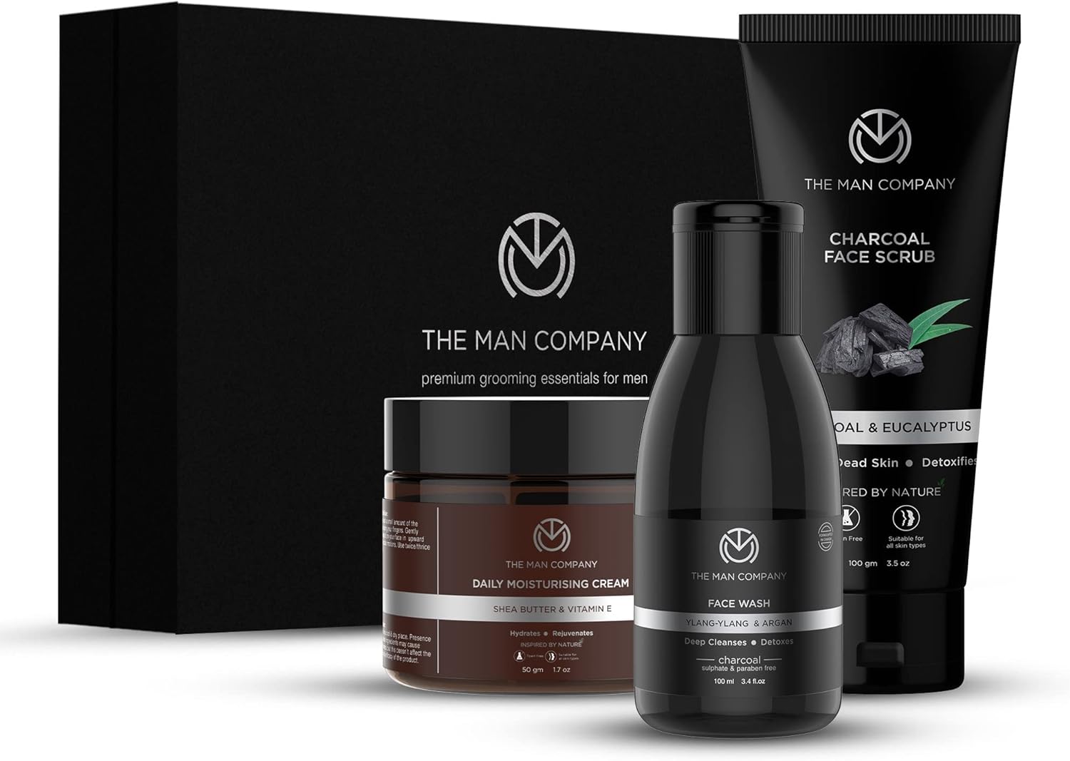 ذا مان كومباني مجموعة ديتان للوجه – غسول الوجه بالفحم، مقشر الفحم، كريم ترطيب الوجه اليومي، افضل عناية بالديتان – عبوة من 3 قطع