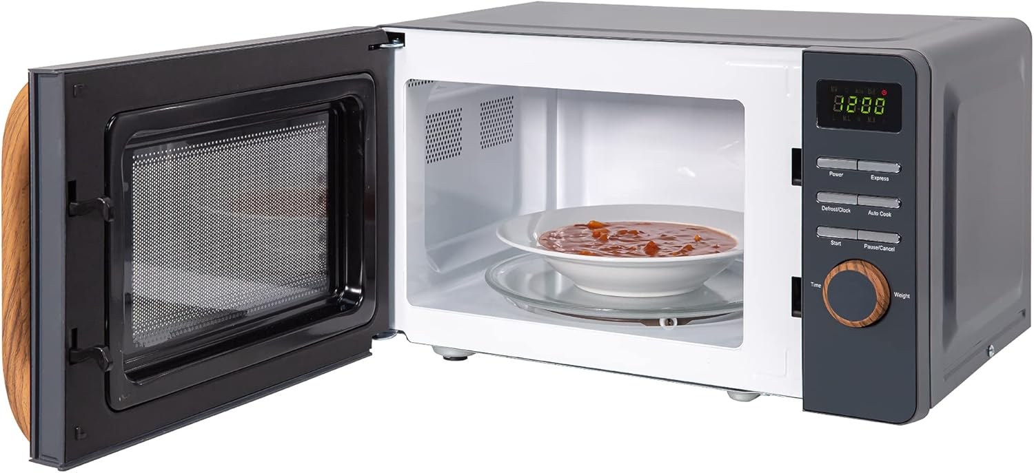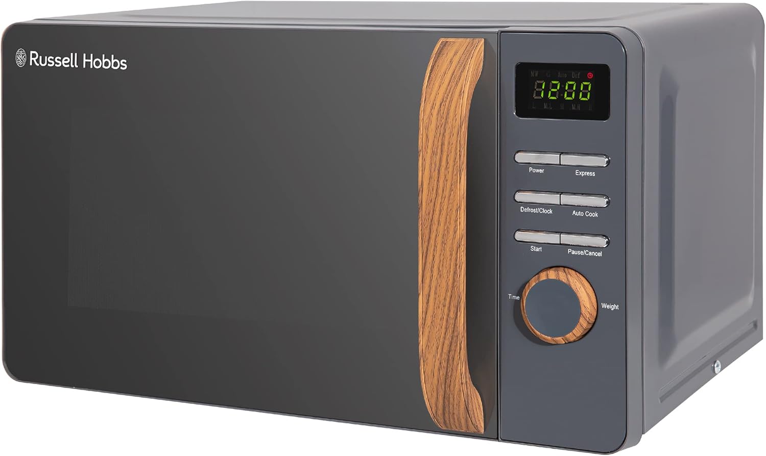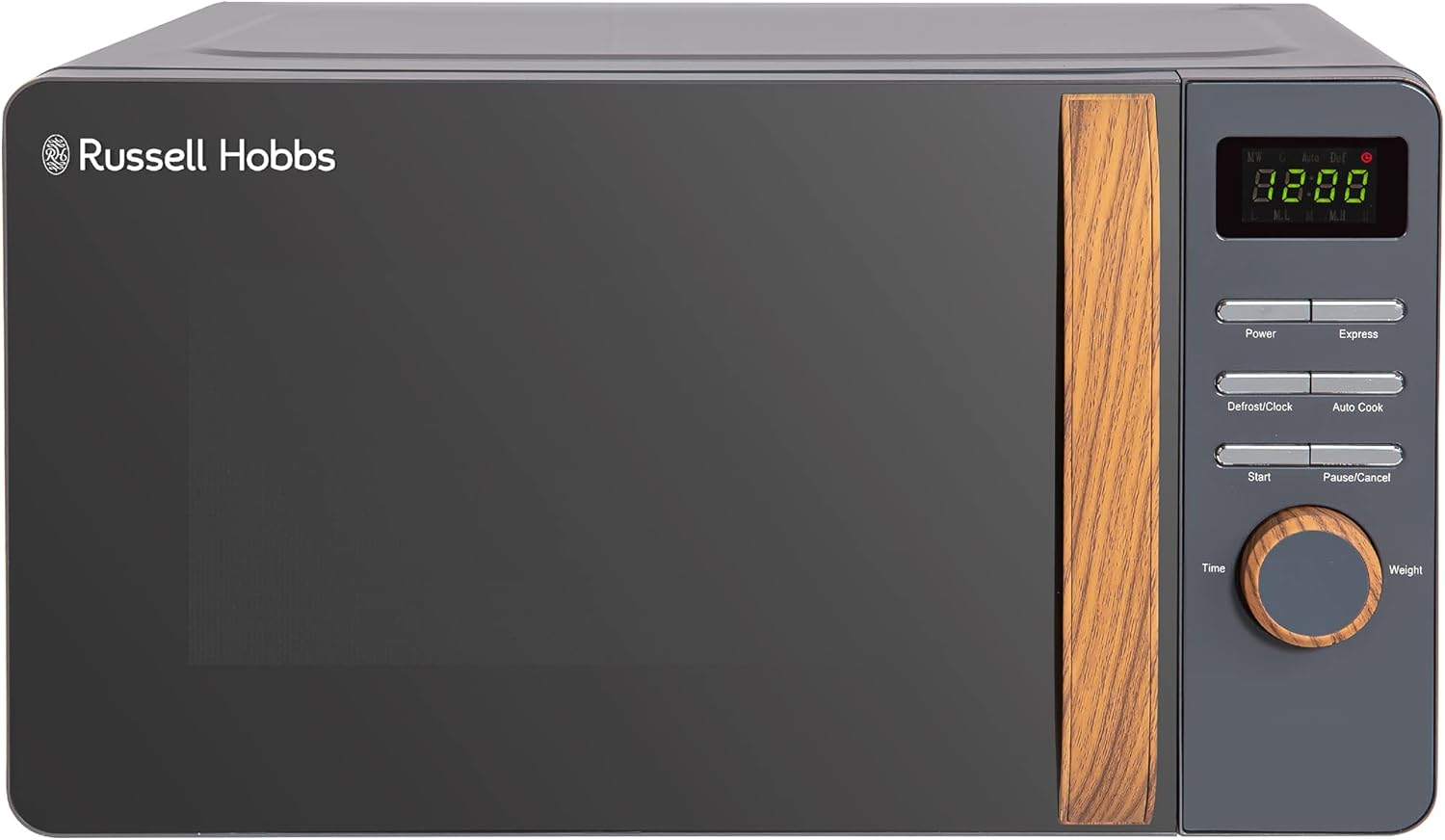 راسل هوبز ميكروويف رقمي RHMD714G سعة 17 لتر 700 واط من سكاندي رمادي مع 5 مستويات طاقة، مقبض واقراص بتاثير خشبي، ساعة ومؤقت، اذابة الثلج التلقائي، سهل التنظيف، 8 قوائم طهي تلقائية