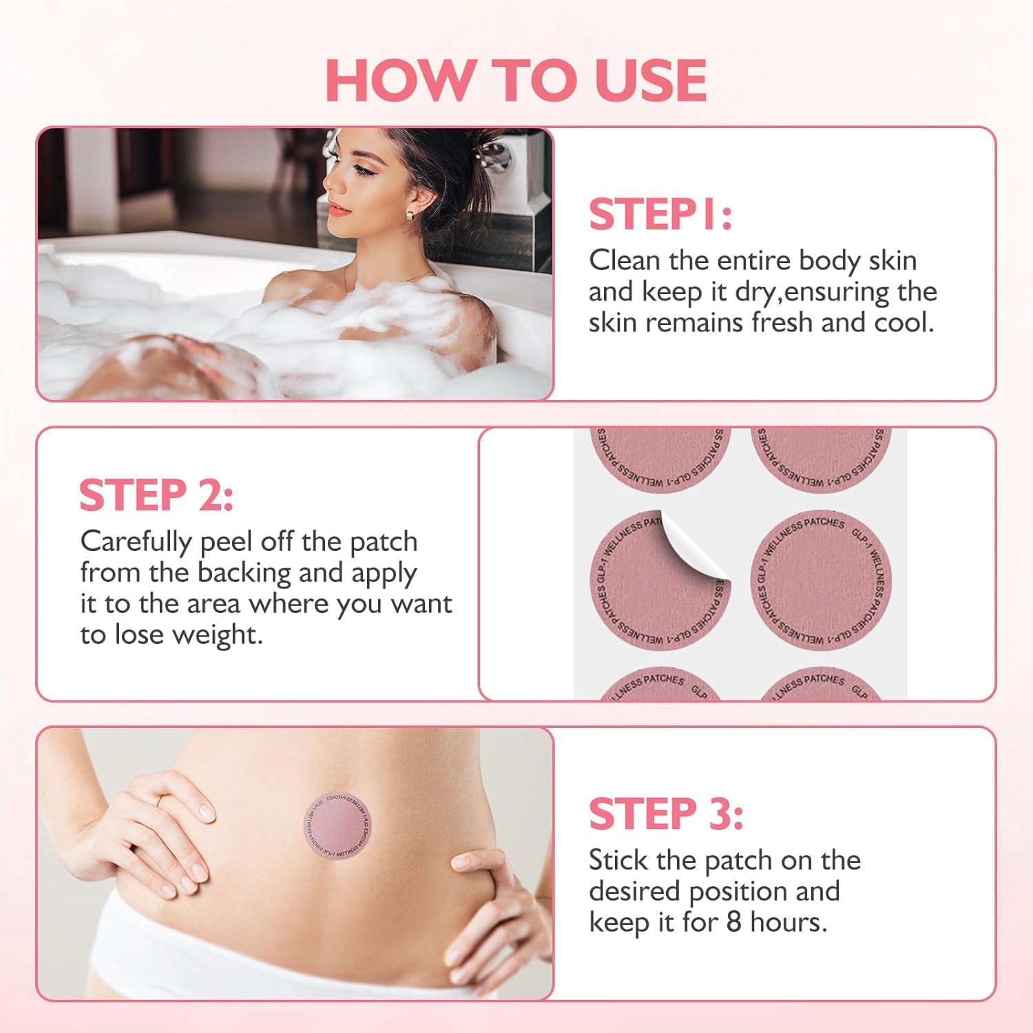 استخدام مريح: سهلة الاستخدام، هذه الرقع لتشكيل الجسم هي طريقة بسيطة وفعالة لدمج المكونات النباتية في روتينك. ببساطة ضعيه على بشرة نظيفة وجافة.