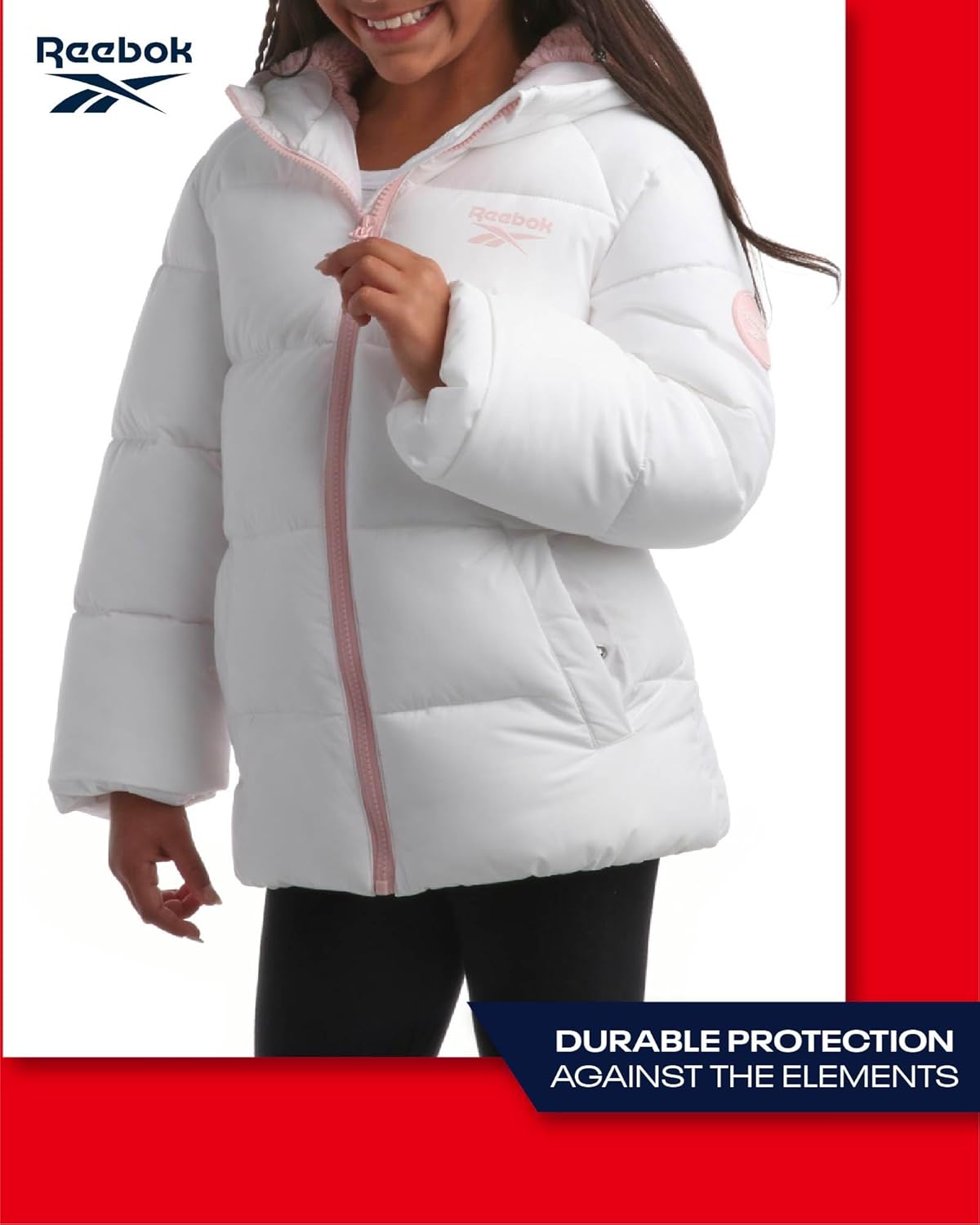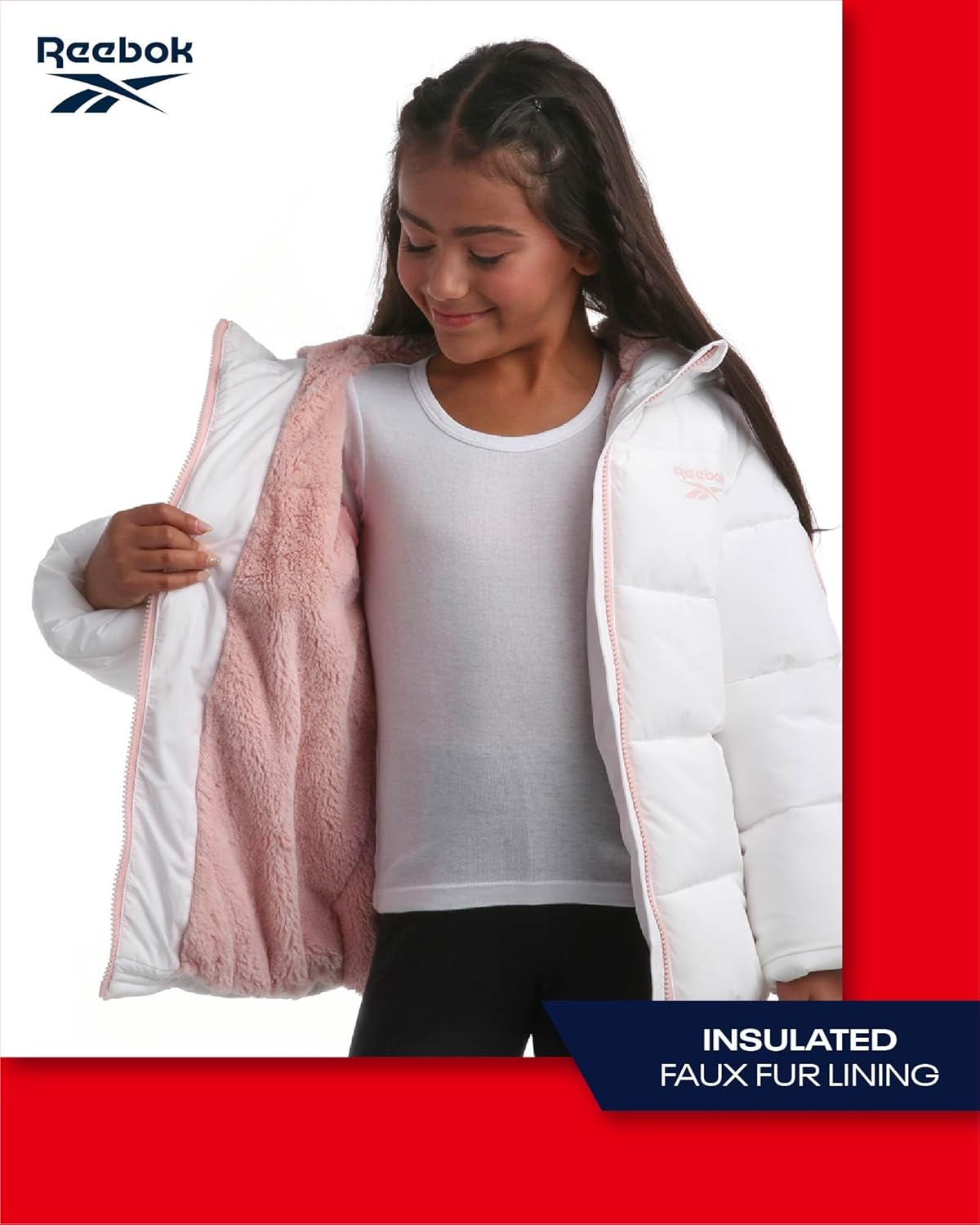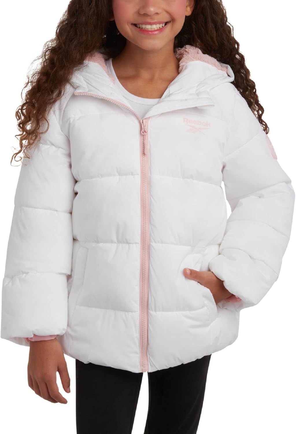 ريبوك جاكيت شتوي للبنات – معطف باركا مبطن ثقيل الوزن – جاكيت تزلج مبطن بصوف الشيربا للبنات (4-16)