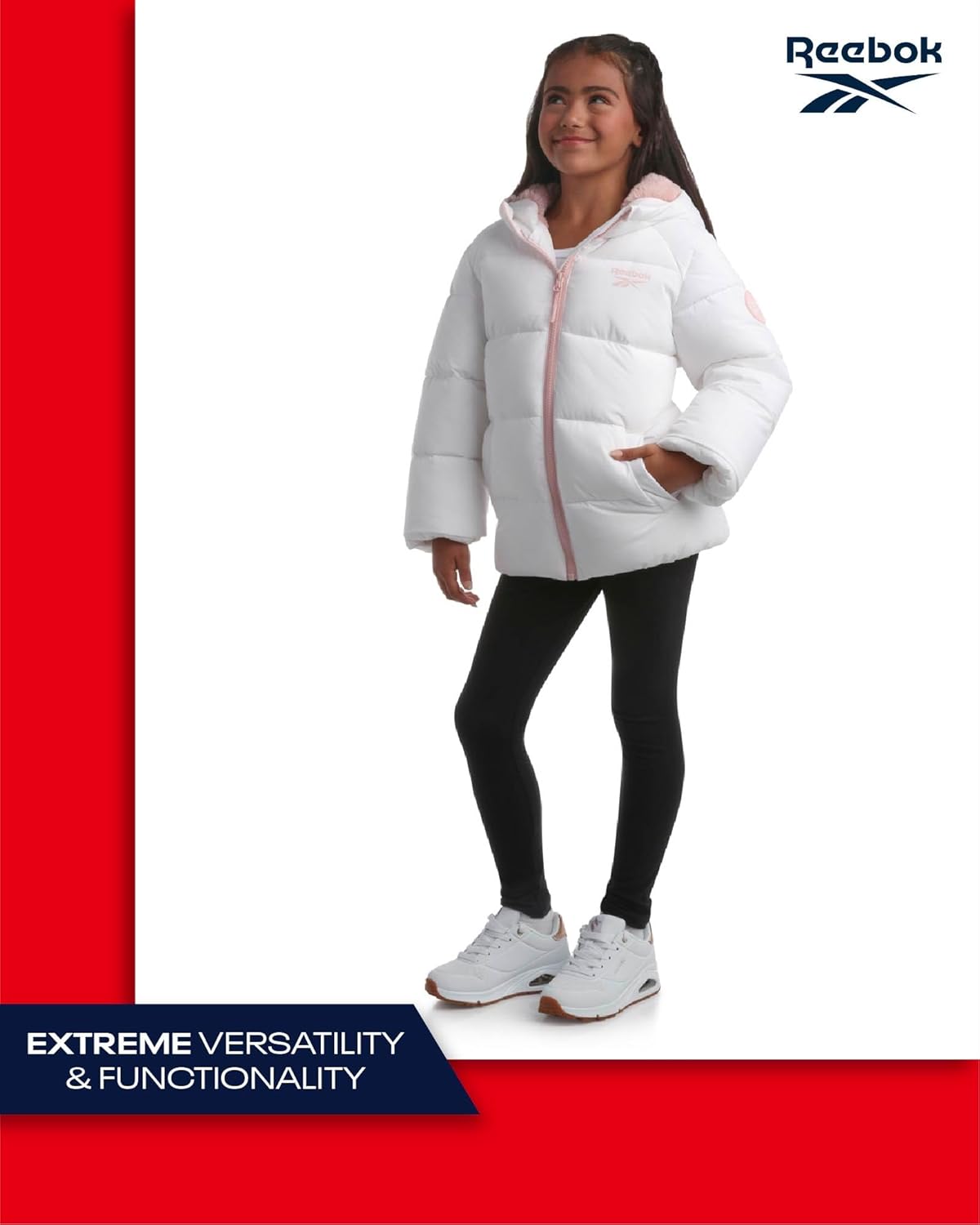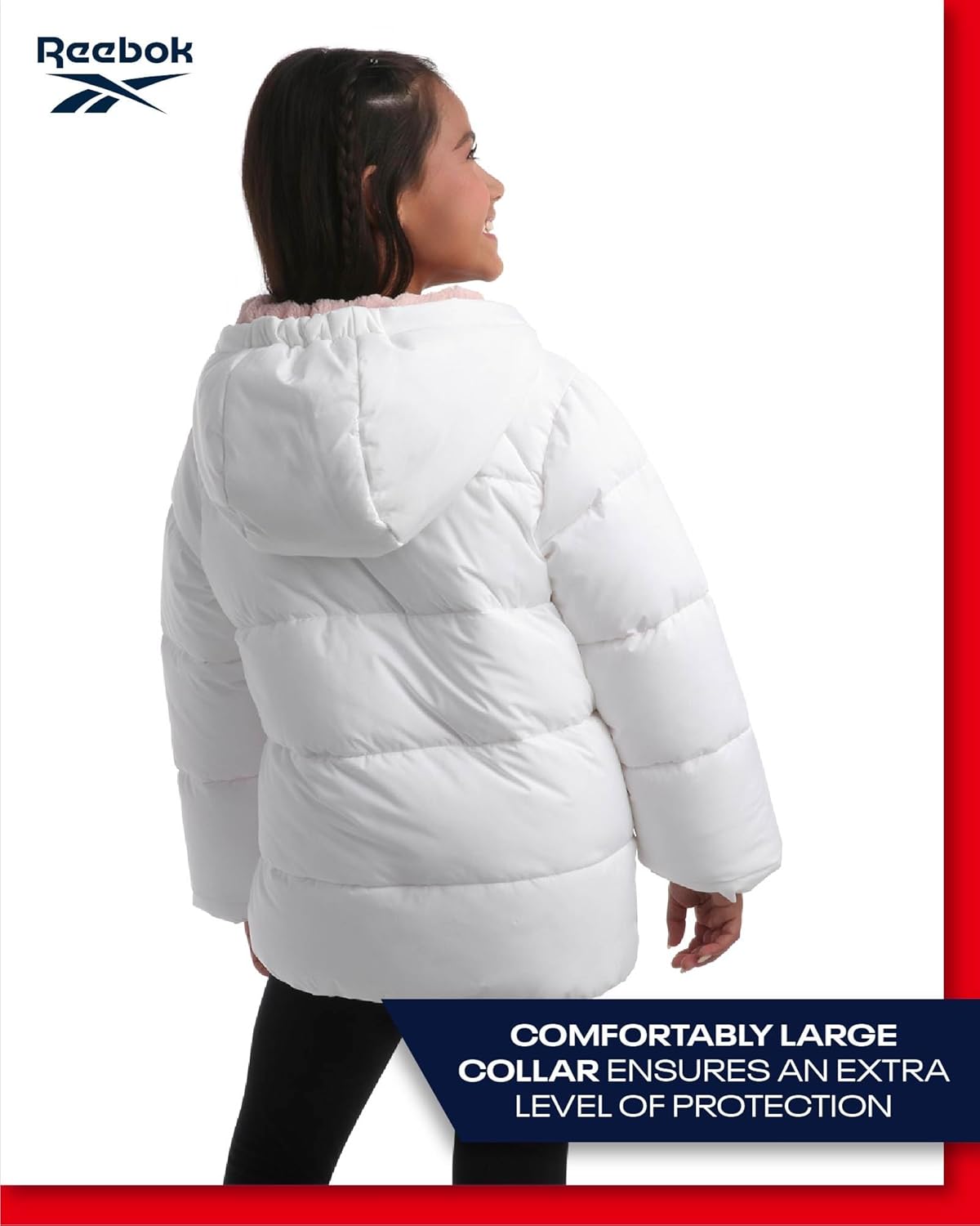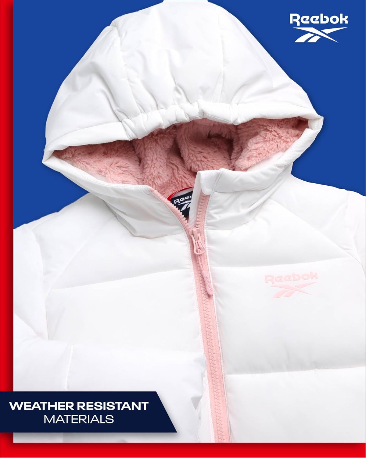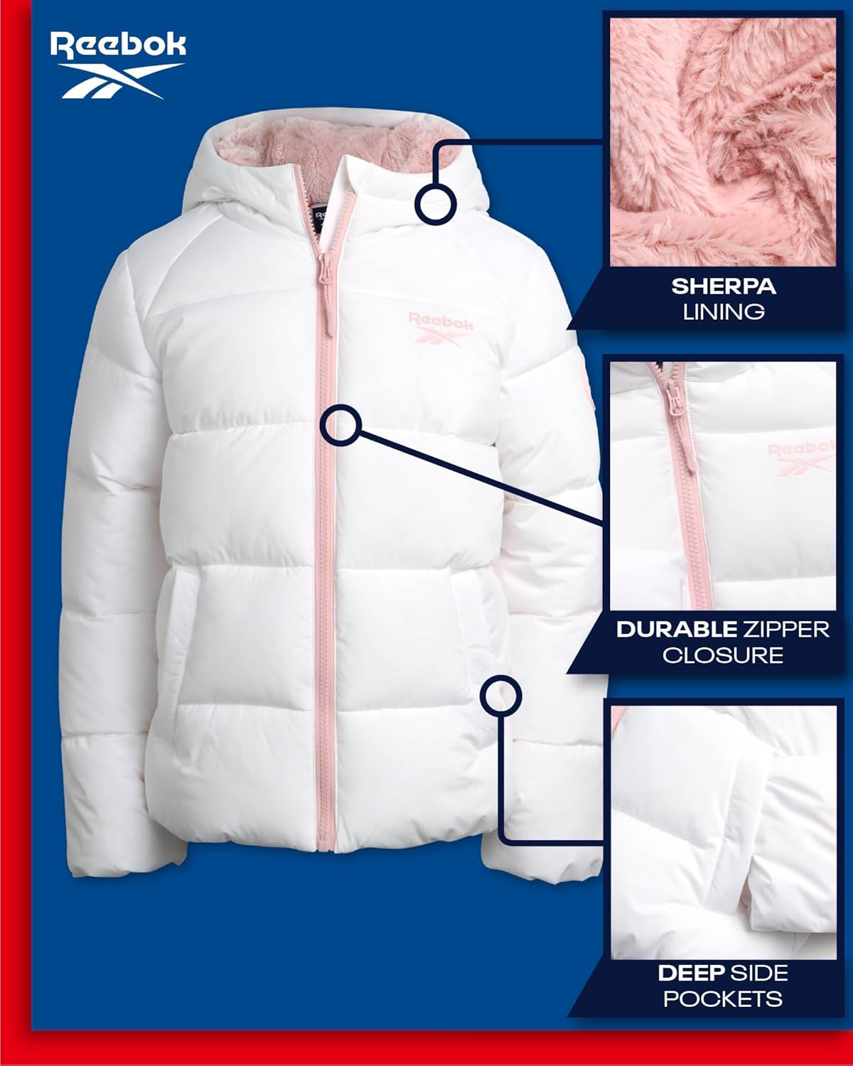 ريبوك جاكيت شتوي للبنات – معطف باركا مبطن ثقيل الوزن – جاكيت تزلج مبطن بصوف الشيربا للبنات (4-16)