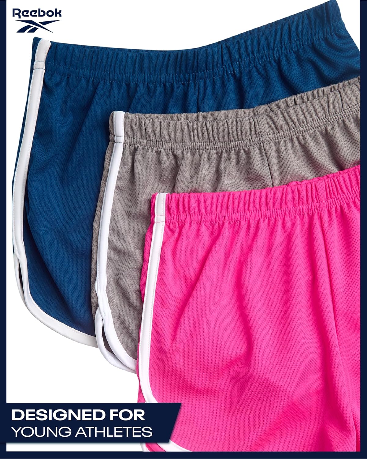 ريبوك شورت رياضي للبنات – 3 قطع من شورت رياضي خفيف الوزن بتصميم دولفين شبكي للجري وكرة القدم وصالة الالعاب الرياضية (7-12)