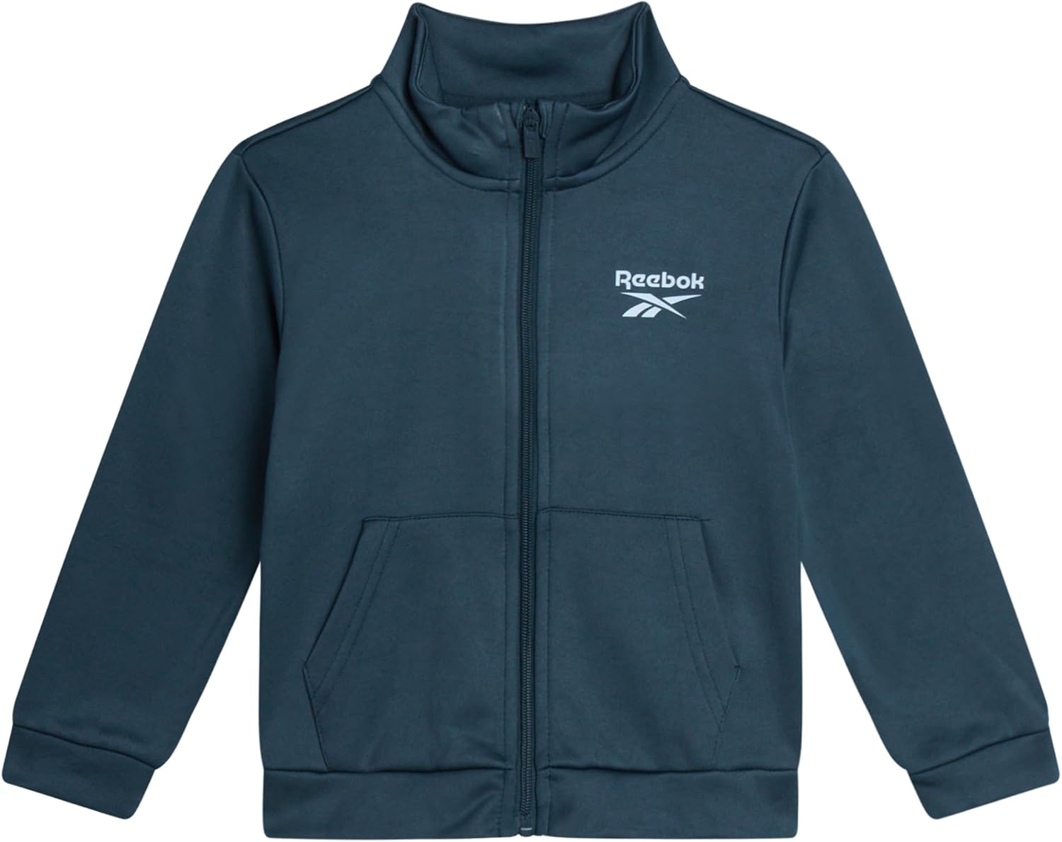 ريبوك طقم بنطلون للاولاد – 3 قطع من تي شيرت تريكو باكمام قصيرة وجاكيت رياضي بسحاب وسروال رياضي للاولاد