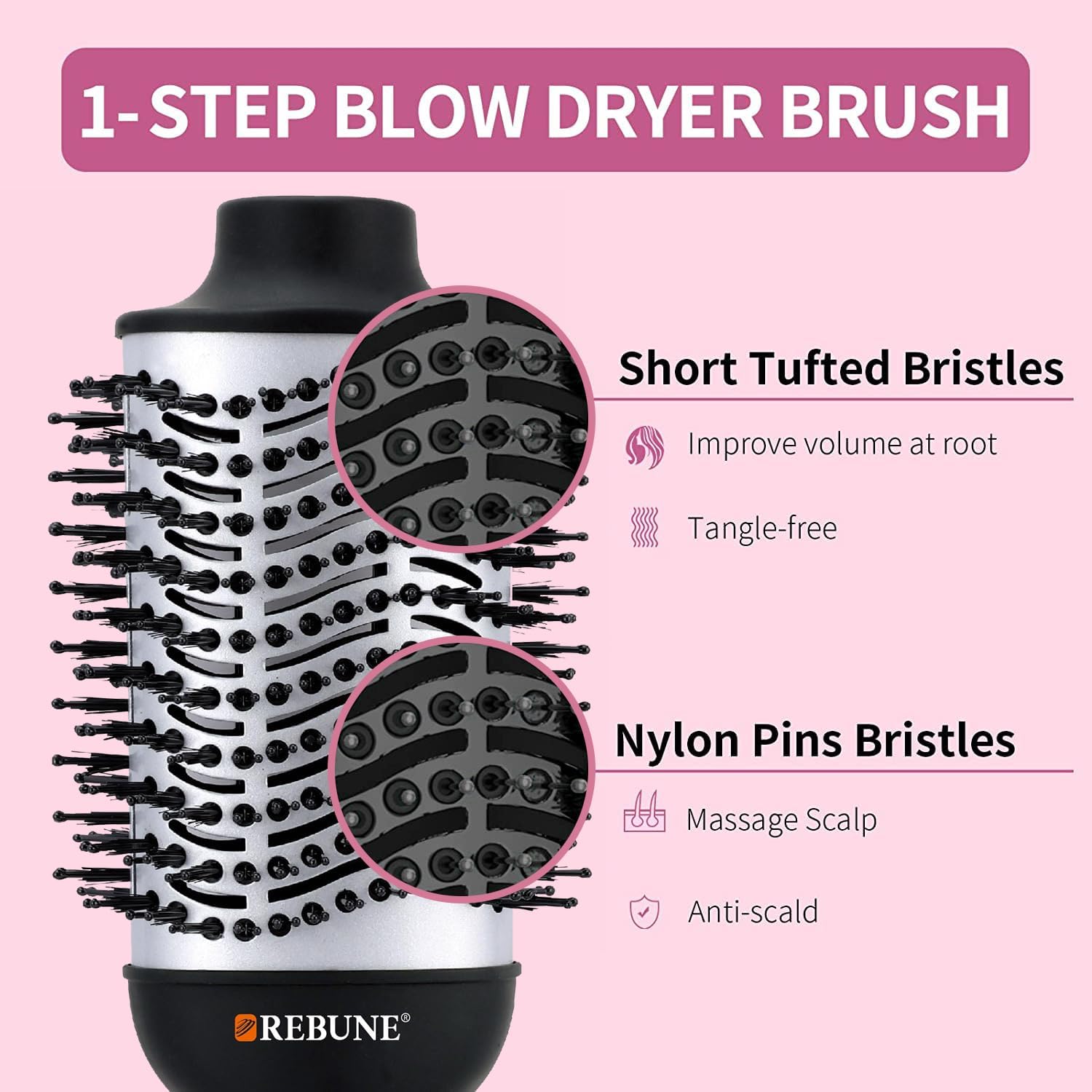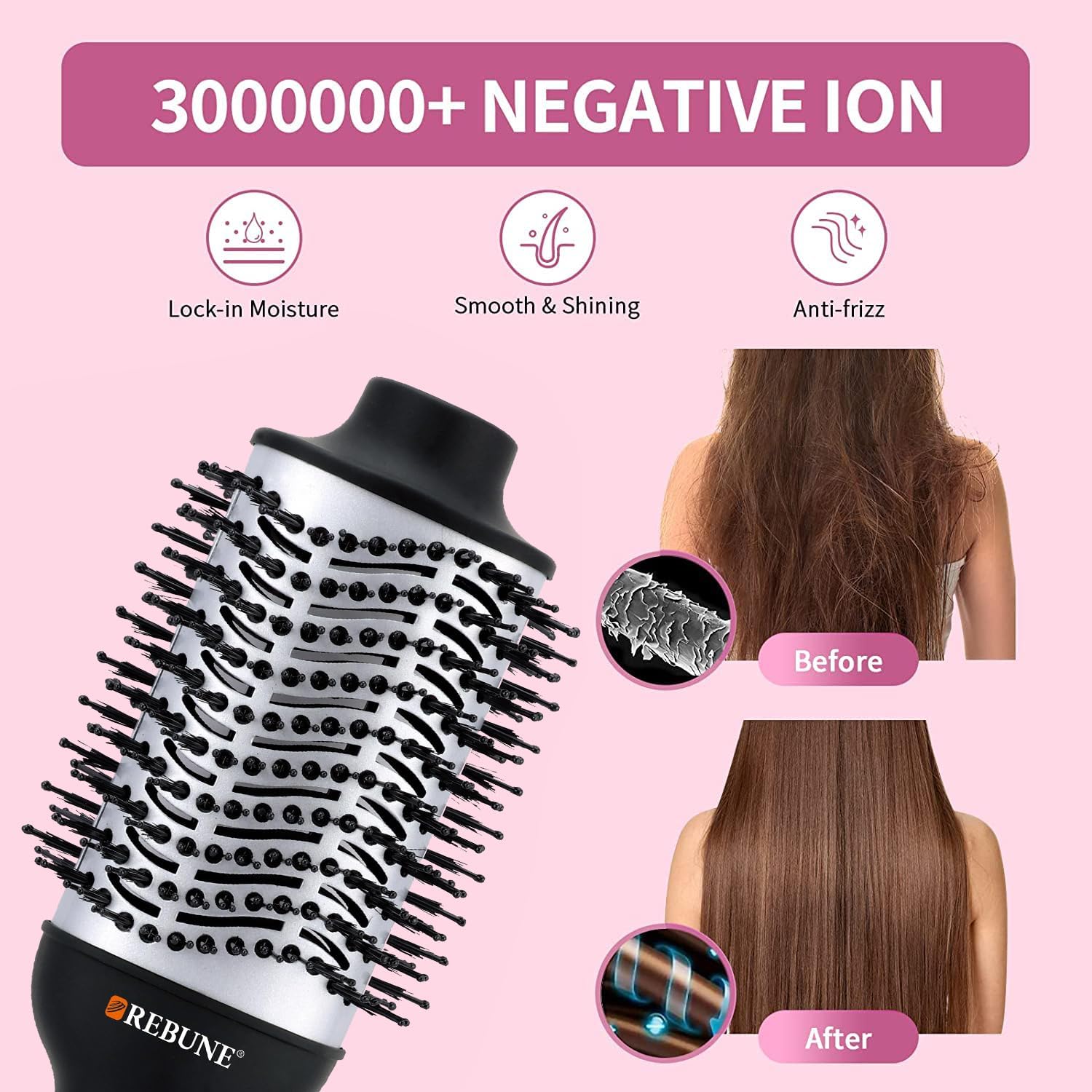【تقنية السيراميك والأيونات】تتميز فرشاة الهواء الساخن من ريبون بأسطوانة السيراميك التيتانيوم للمساعدة في تقليل الضرر الناتج عن التصفيف الزائد مع توزيع الحرارة بالتساوي. يمكن للأيونات السالبة أن تخترق الشعر بسرعة للمساعدة في حبس الرطوبة، وتغذية الشعر التالف، وتقليل التجعد والكهرباء الساكنة للحصول على شعر أكثر نعومة ولمعانًا.