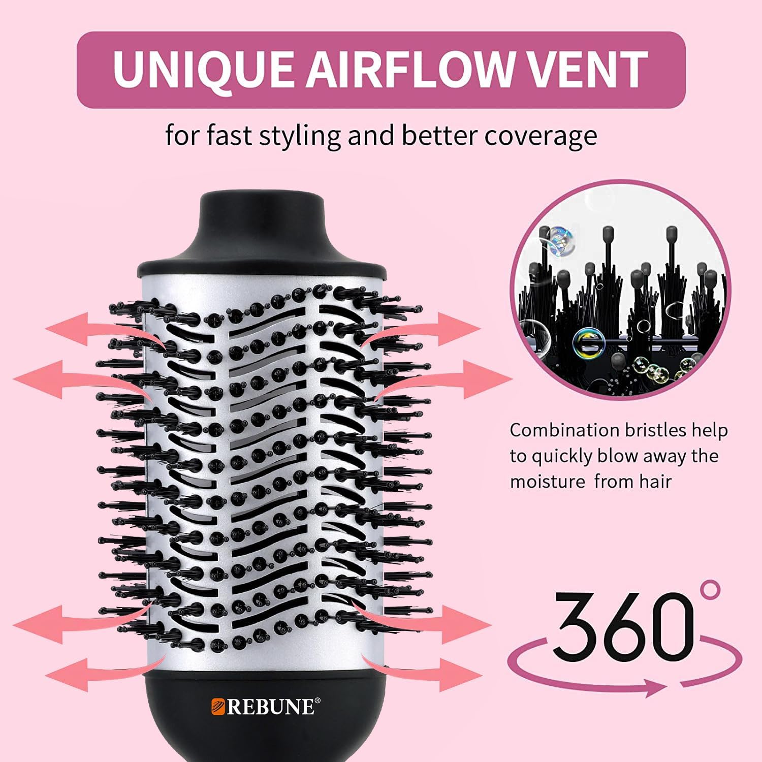 تجفيف الشعر بنتيجة رائعة، تتميز الأسطوانة الفريدة ذات الشكل البيضاوي بتدفق هواء 360 درجة وألواح من التيتانيوم للمساعدة في التنعيم، بينما يمكن للحواف الدائرية أن تعزز من كثافة شعرك وشكله. مصمم بدبوس من النايلون وشعيرات معنقدة، يمكنه منع تشابك الشعر وتحسين كثافته ولمعانه.