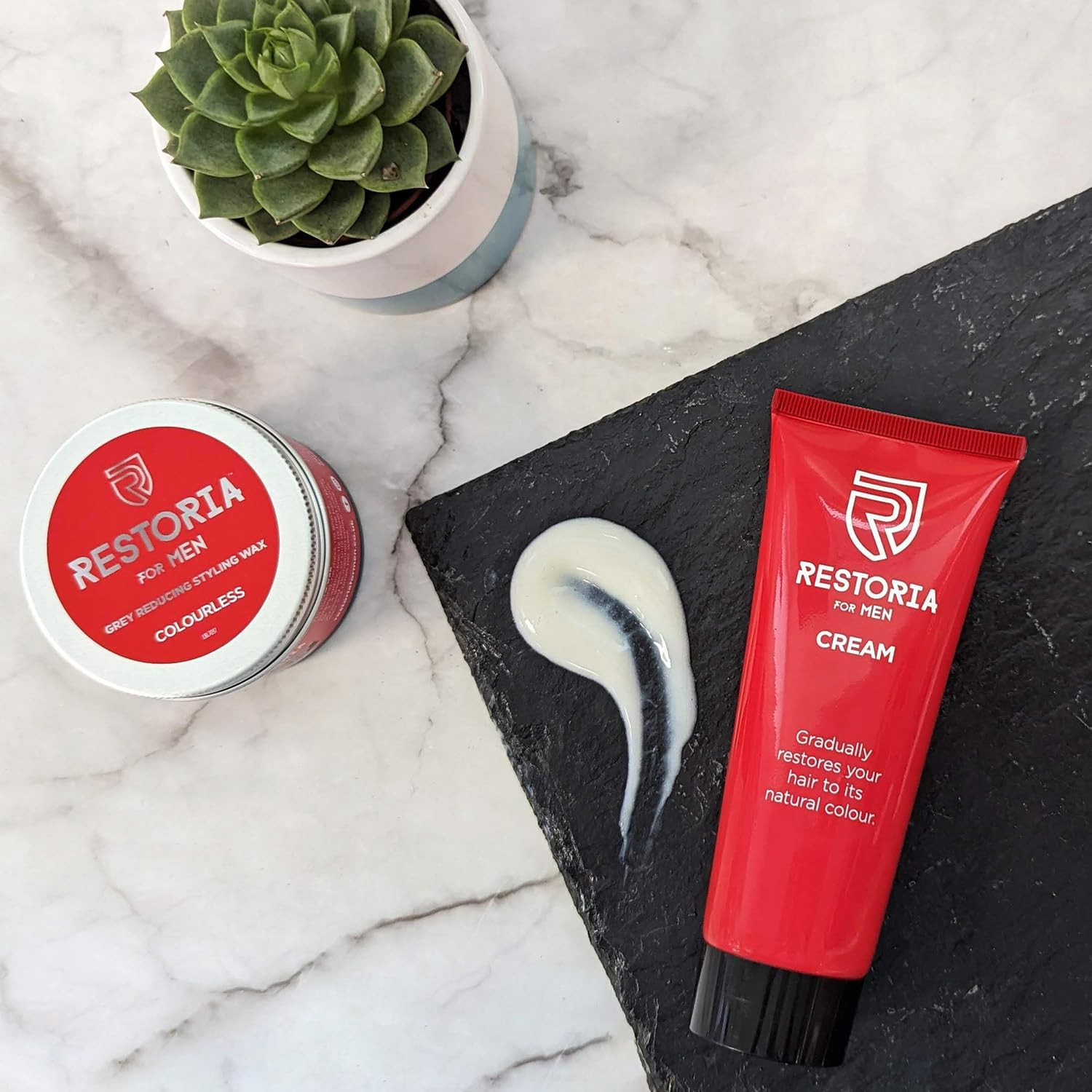 ريستوريا كريم تقليل الشعر الرمادي للرجال – كريم للشعر لاستعادة لون الشعر الطبيعي تدريجيا، تغطية تصل إلى 100% للشعر الرمادي – نباتي، 100 مل