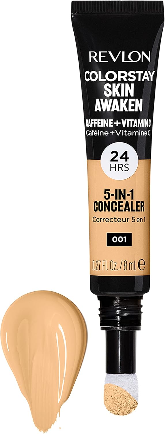 ريفلون كونسيلر سكين اويكن 5 في 1 من كولور ستاي، مكياج وجه كريمي خفيف الوزن يدوم طويلا مع الكافيين وفيتامين سي للعيوب والهالات السوداء والاحمرار، 001 محايد عالمي، 0.21 اونصة سائلة