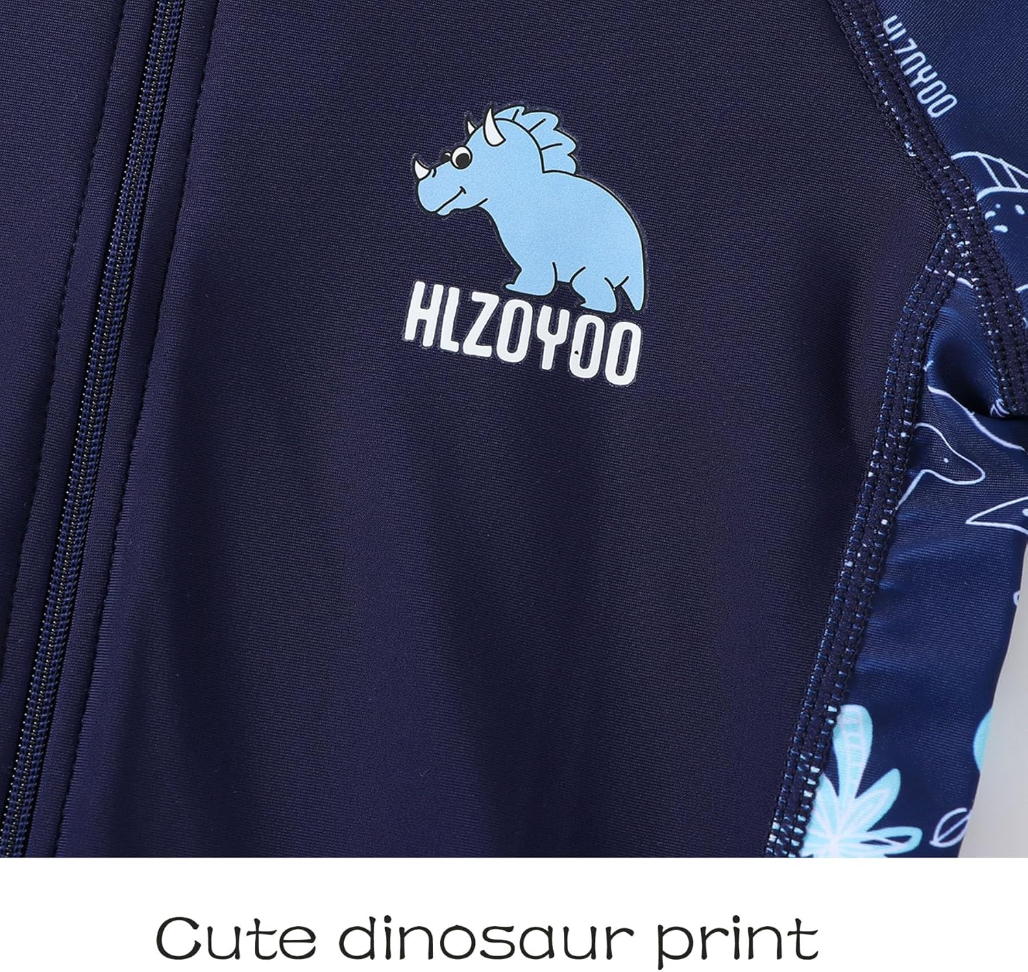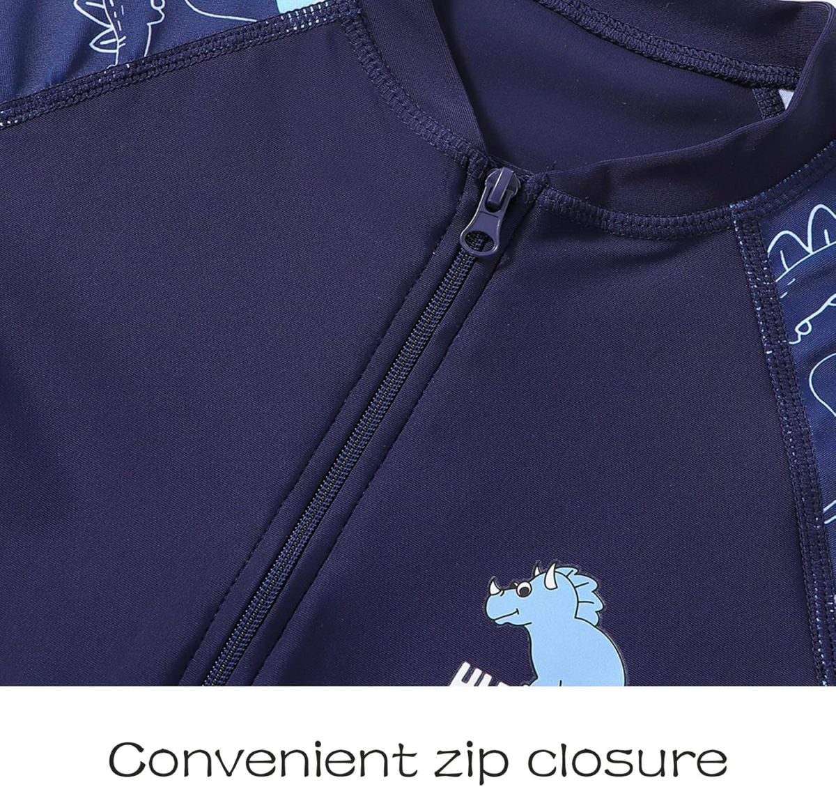 زامبلو بدلة سباحة للاولاد من قطعة واحدة باكمام قصيرة وسحاب للشاطئ بتصميم ديناصور للحماية من الطفح الجلدي بلون ازرق داكن لعمر 3-10 سنوات