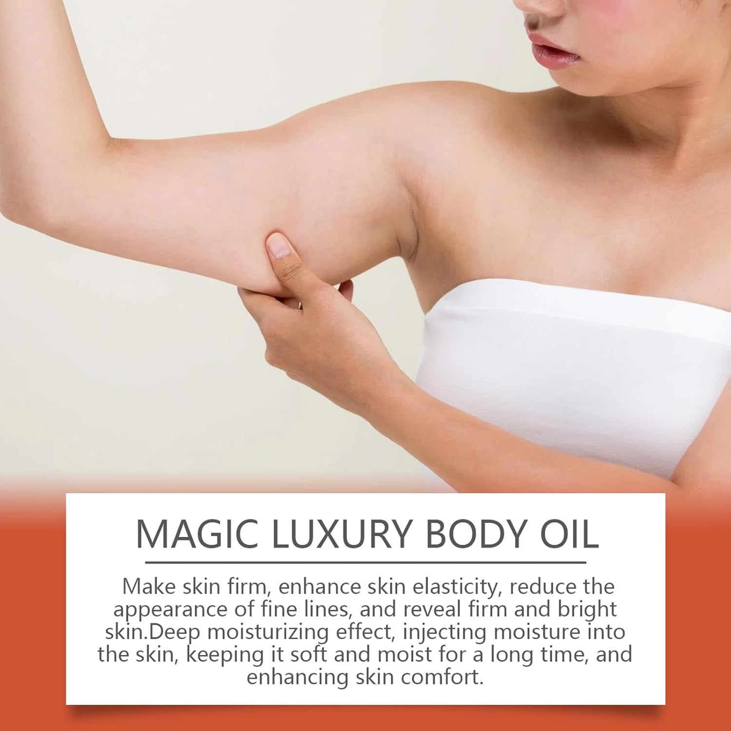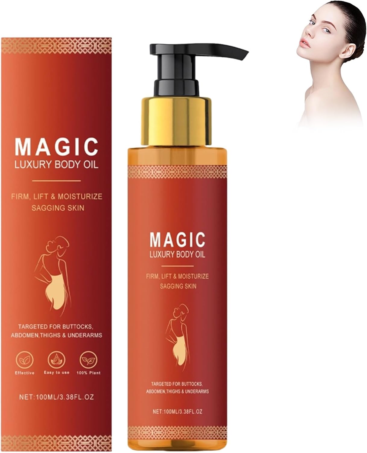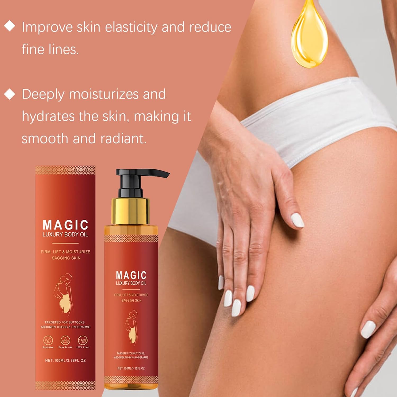 تأثير شد السحر: جربي رفاهية زيت شد الجسم السحري الخاص بنا، المصمم خصيصًا للنساء لشد البشرة وتحديدها، مما يعزز المرونة للحصول على صورة ظلية منحوتة.