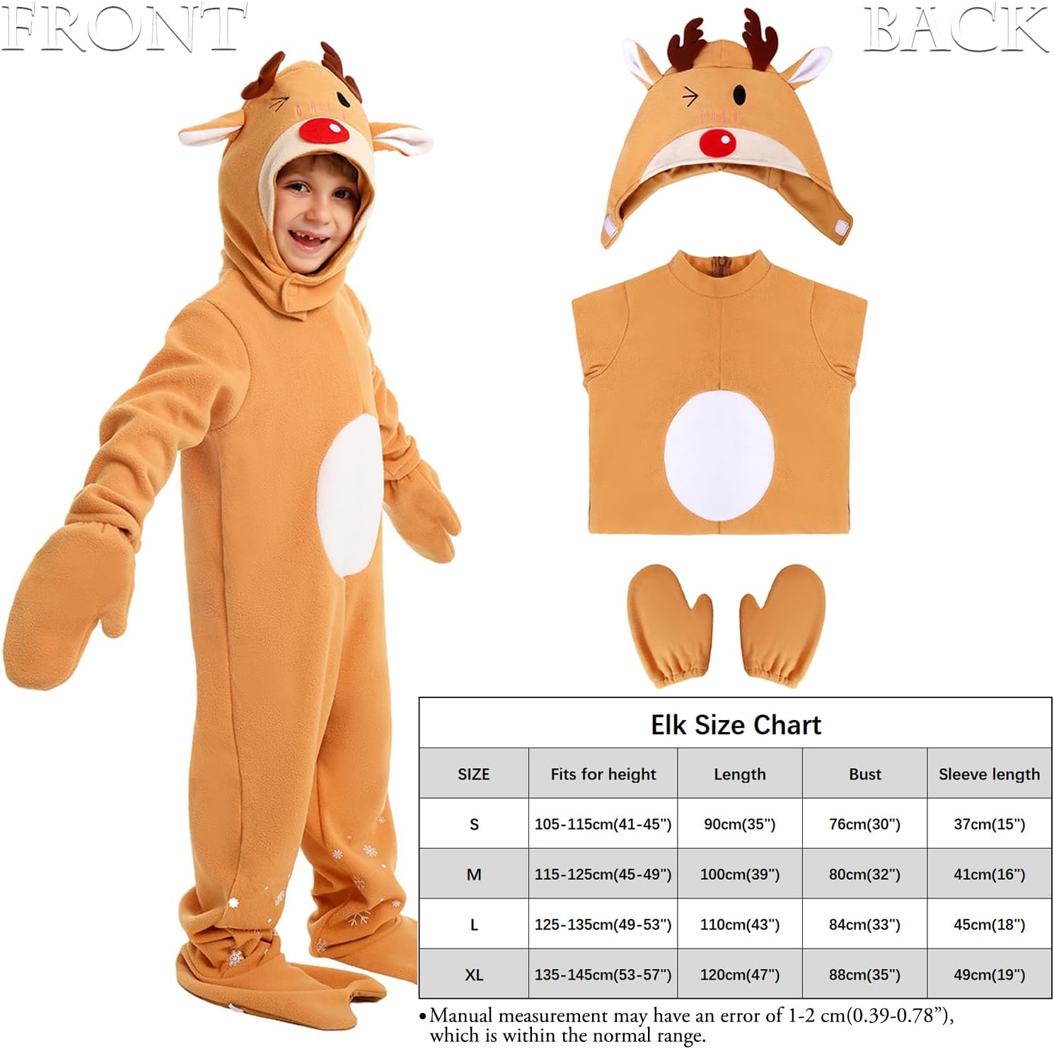 مقاس M يناسب الطول 115-125 سم (45-49 انش)، العمر الموصى به 4-5 سنوات، الطول 105 سم (41 انش)، الصدر 80 سم (31 انش)، طول الكم 43 سم (16 انش)