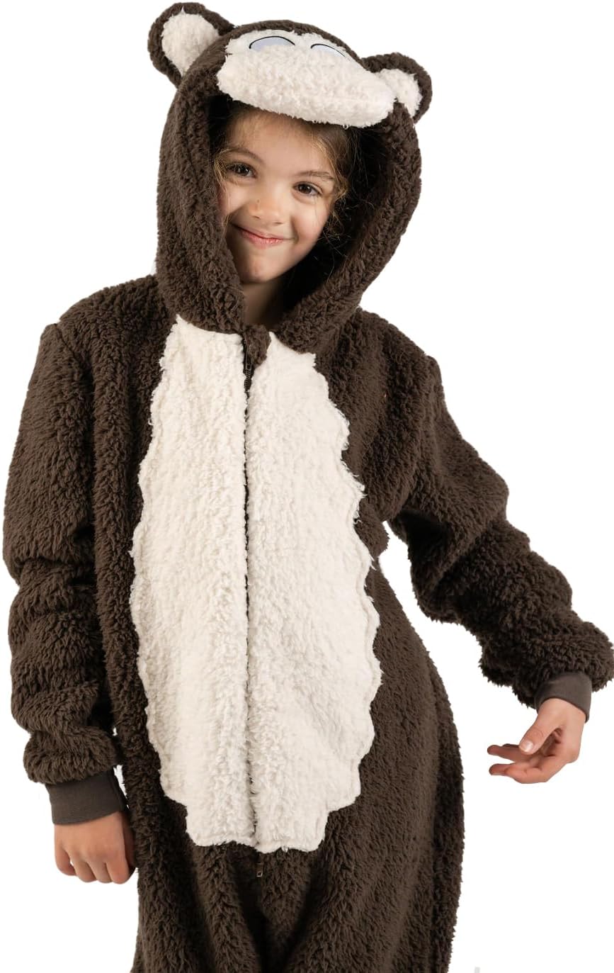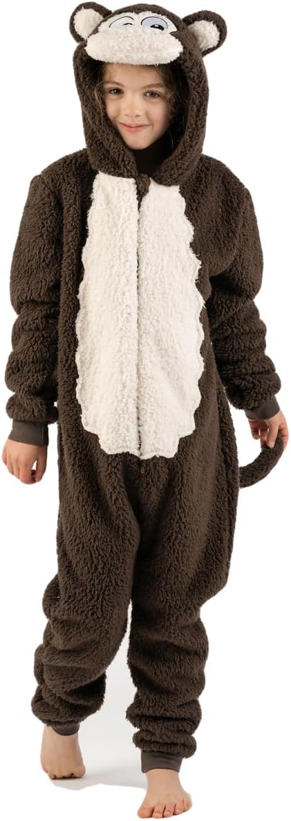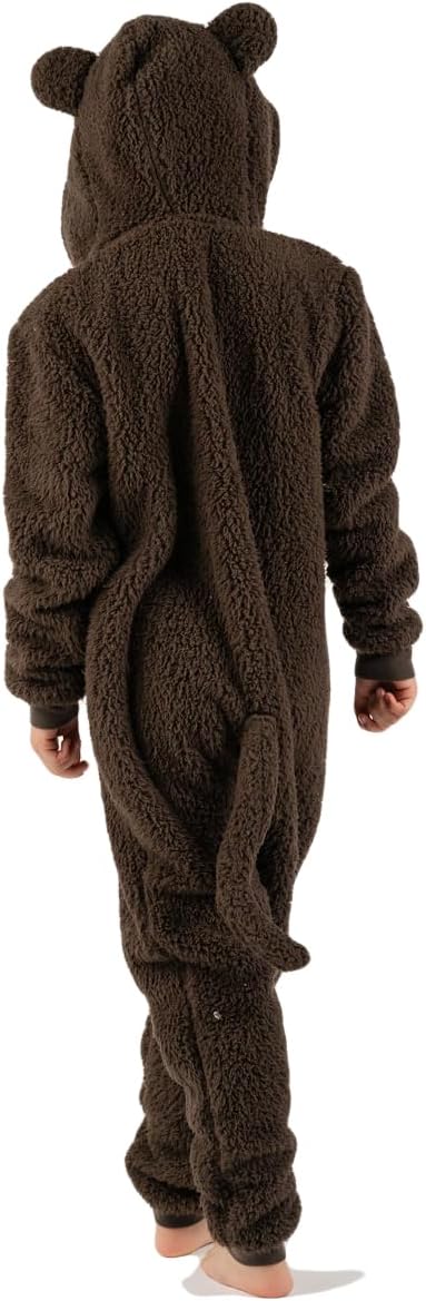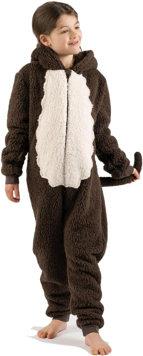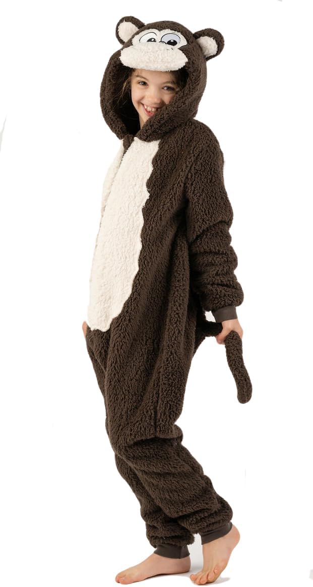 زي تنكري للاطفال بتصميم قرد بني الكل في واحد مناسب ليوم الكتاب العالمي للاولاد والبنات من الصوف الناعم مع ذيل بمقاسات الاطفال من سن 2-13 سنة