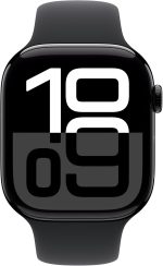ساعة ابل الاصدار 10 (شريحه اتصال + جي بي اس) إطار ألومنيوم أسود لامع مقاس 46 مم مع حزام رياضي أسود – مقاس S/M
