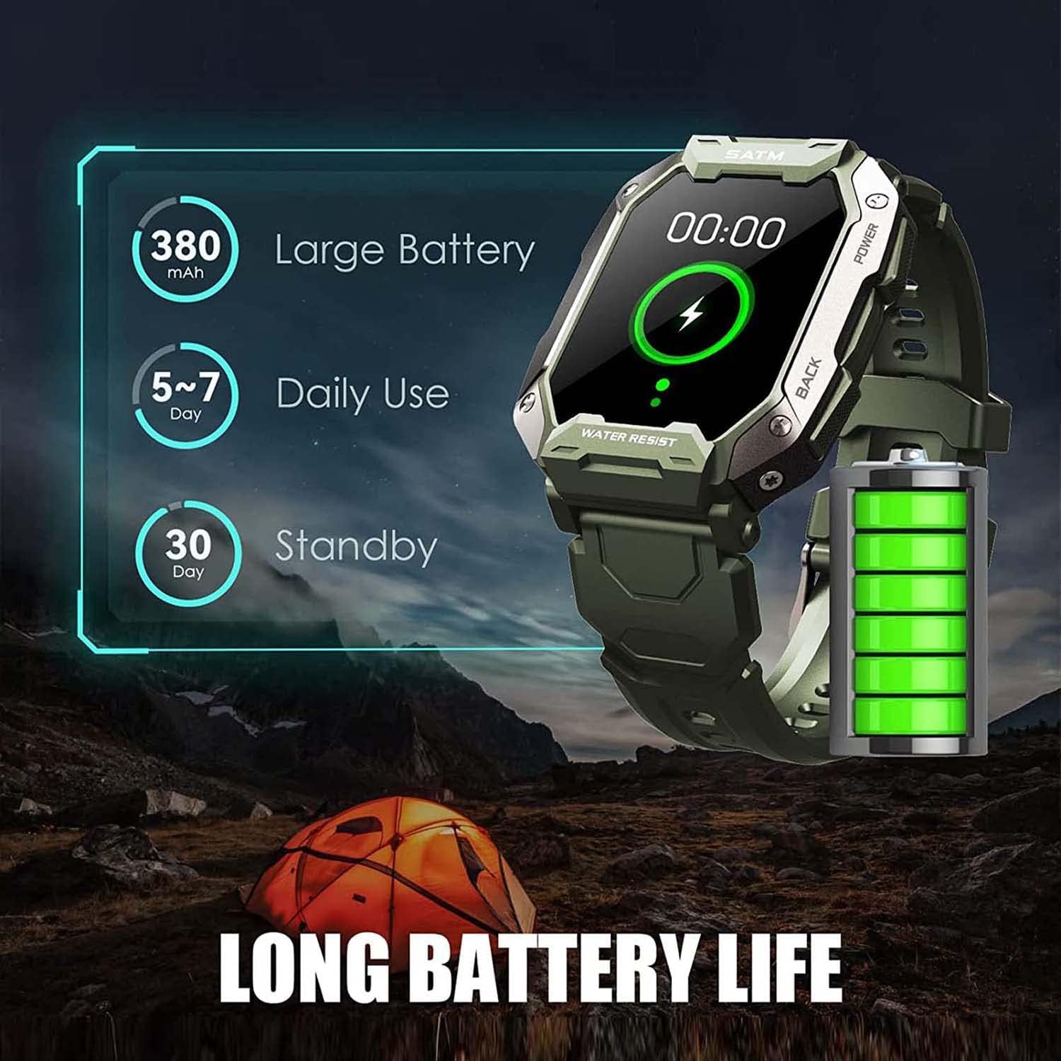 ساعة ذكية عسكرية رياضية تكتيكية للرجال مقاومة للماء 5 ايه تي ام 1.71 انش لتتبع اللياقة البدنية ومعدل ضربات القلب ومراقبة النوم متوافقة مع اندرويد وايفون وسامسونج (اخضر)