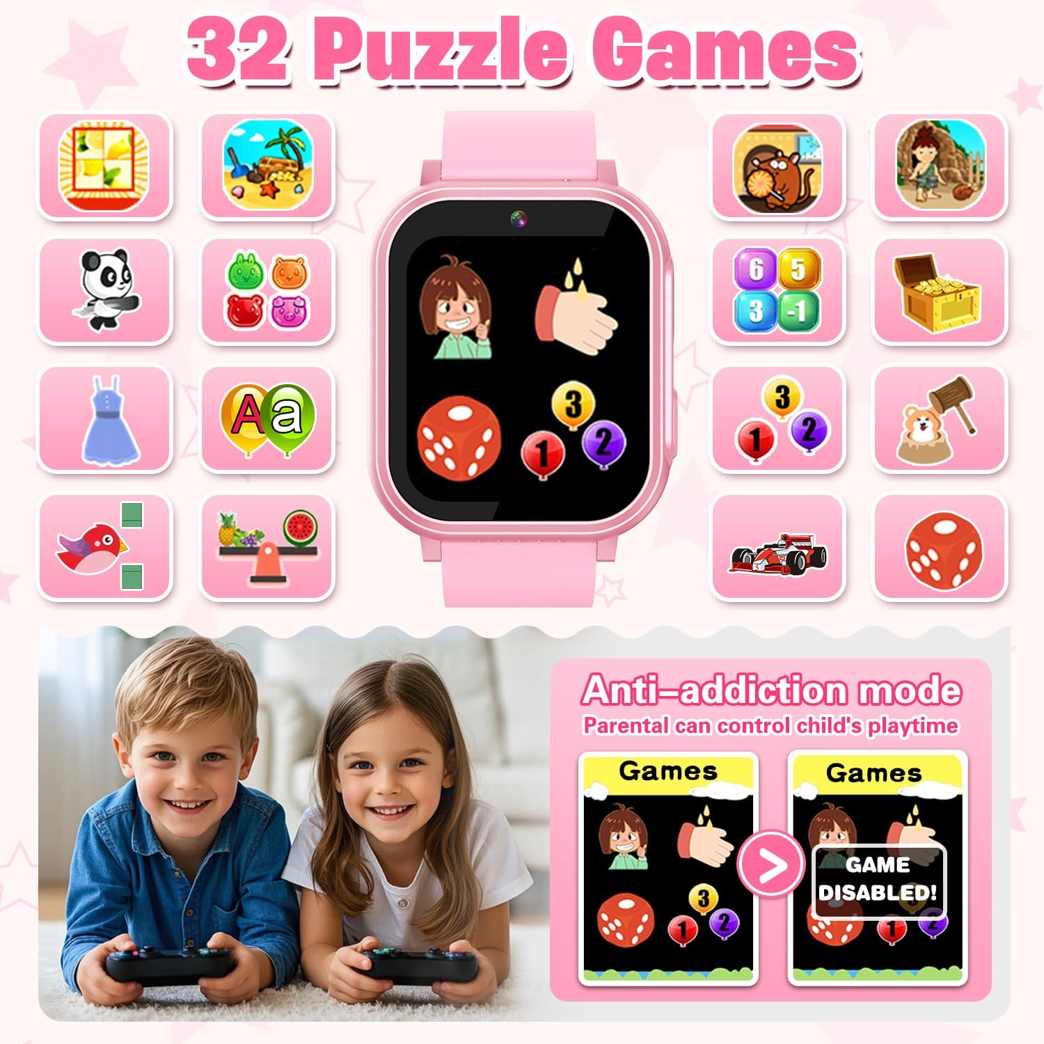 ساعة ذكية للاطفال من فاكزوفي، هدايا للبنات بعمر 3-10 سنوات، كاميرا مزدوجة تعمل باللمس، ساعة ذكية للاطفال مع مشغل موسيقى، العاب تعليمية، هدية عيد ميلاد للبنات بعمر 6 7 8 سنوات