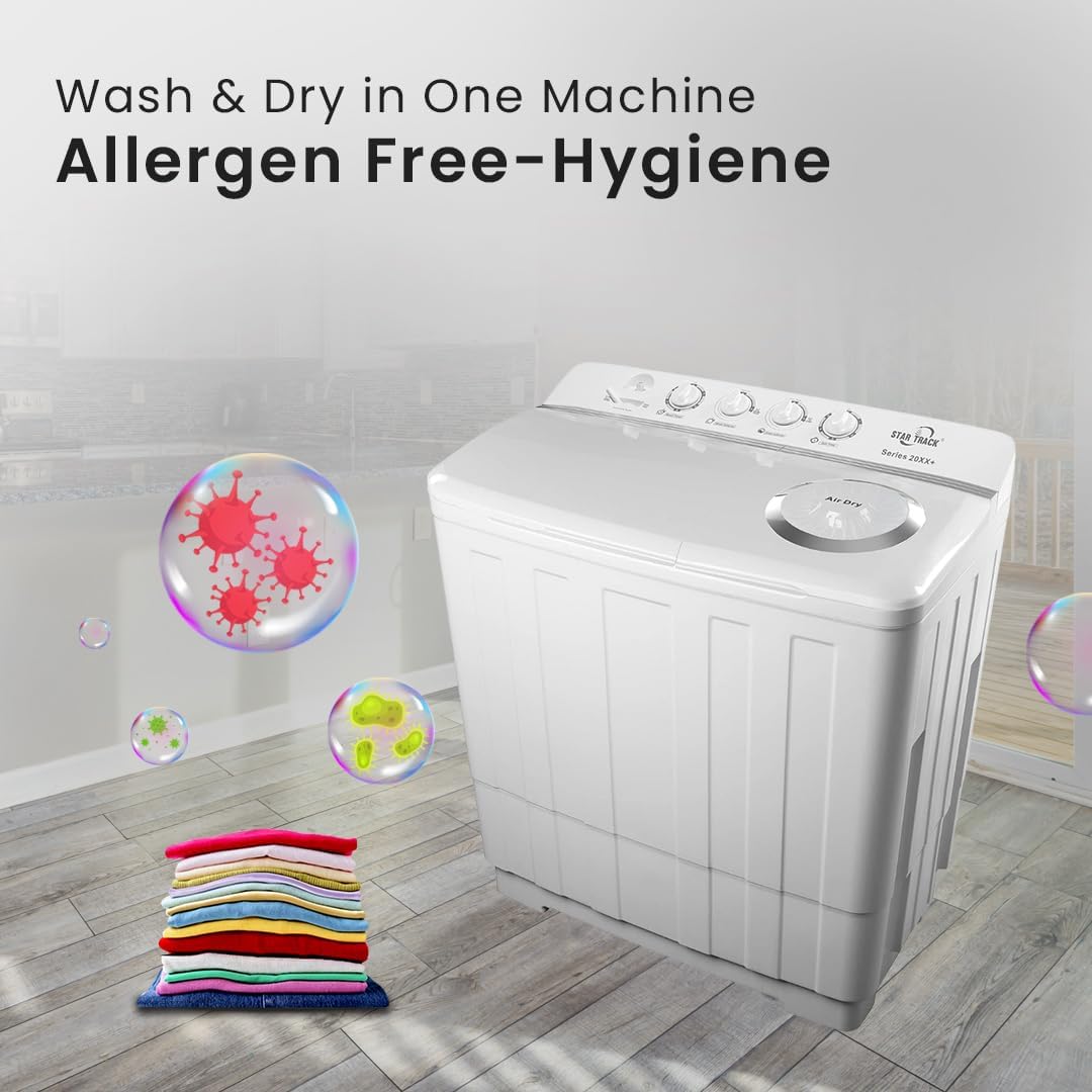 ستار تراك غسالة نصف اوتوماتيكية بحوضين بوزن 20 كجم، غسالة تحميل علوي مع فلتر وبر SW-2000W1-TK (ضمان لمدة عام)